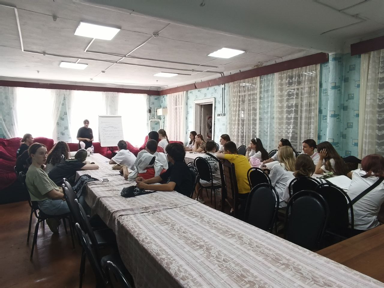 Варвара Александровна и Анастасия Игоревна рассказали ребятам о вожатстве и напарничестве, о присущих вожатому качествах, образе поведения и поделились историями из практики. Особое внимание на занятии тренера уделили внешности вожатого и его компетенциям.
