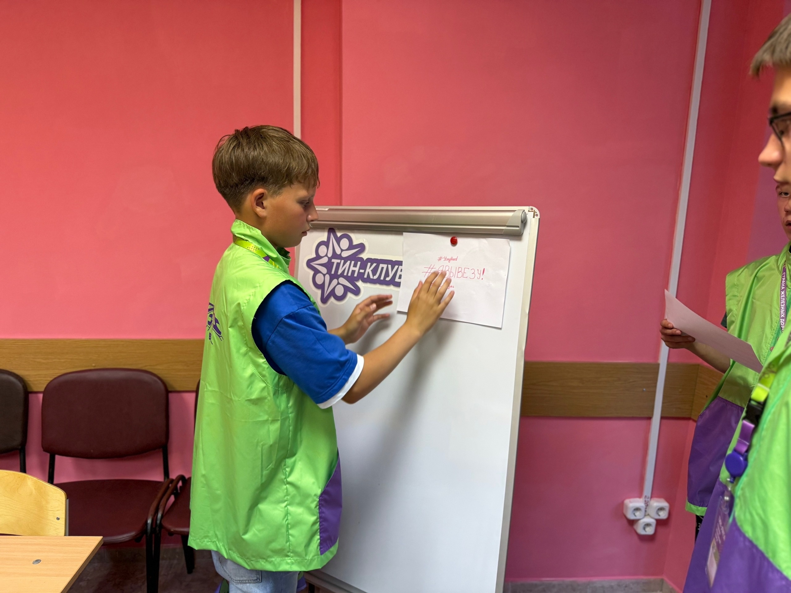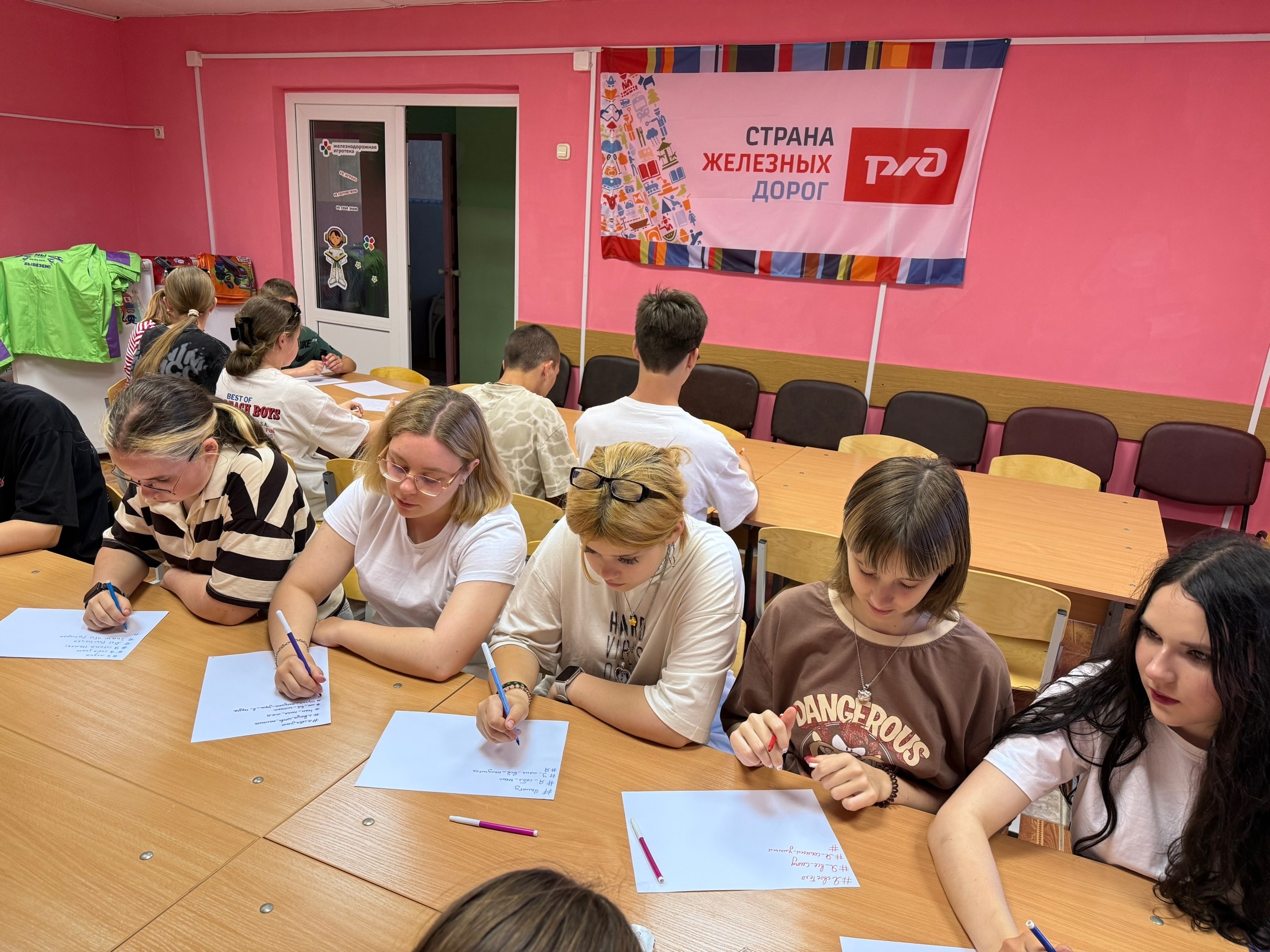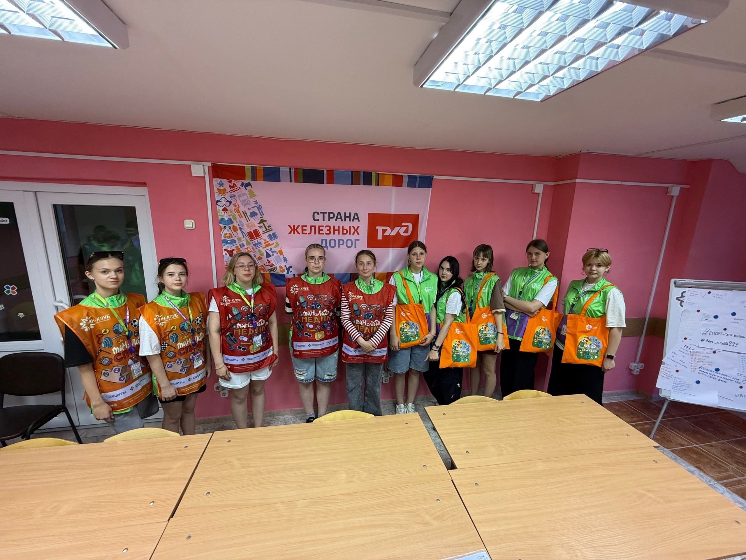 В лагере Юный железнодорожник есть место, где царит добрая атмосфера — команда Тин-лиги креативит здесь, вносит свои идеи. Отрядное место стало уютным благодаря им. Сегодня дан был старт 2 смены и новому составу команды. Ребята получили свою униформу плюс футболки.