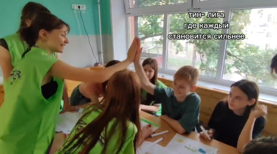 В Тин-Лиге подростки берут на себя ответственность, помогая тренерам проводить занятия. Они готовят игры, поддерживают малышей при выполнении заданий и показывают, как важно работать в команде.
