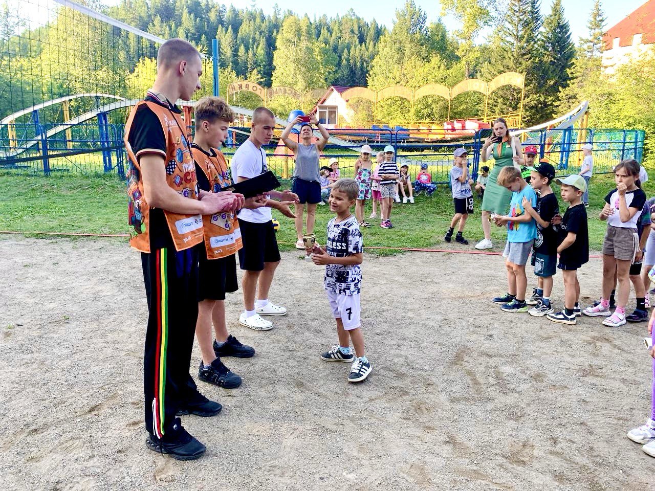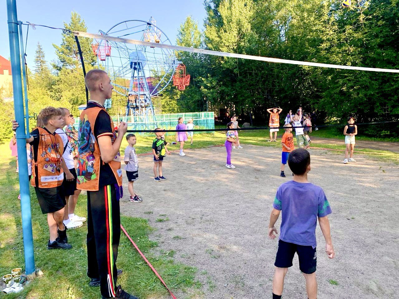 Помощники спортивных инструкторов раскачали спортивные площадки лагеря "Огоньки".