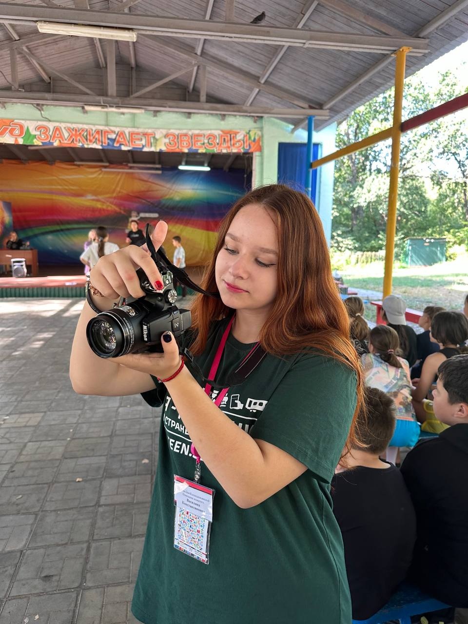 Василина ведет медиа-направление. Она делает видео- и фотоотчеты каждого мероприятия и активно ведет социальные сети лагеря. Благодаря её креативности и усердию, все важные моменты смены запечатлены, а родители и друзья участников могут следить за событиями в режиме реального времени.