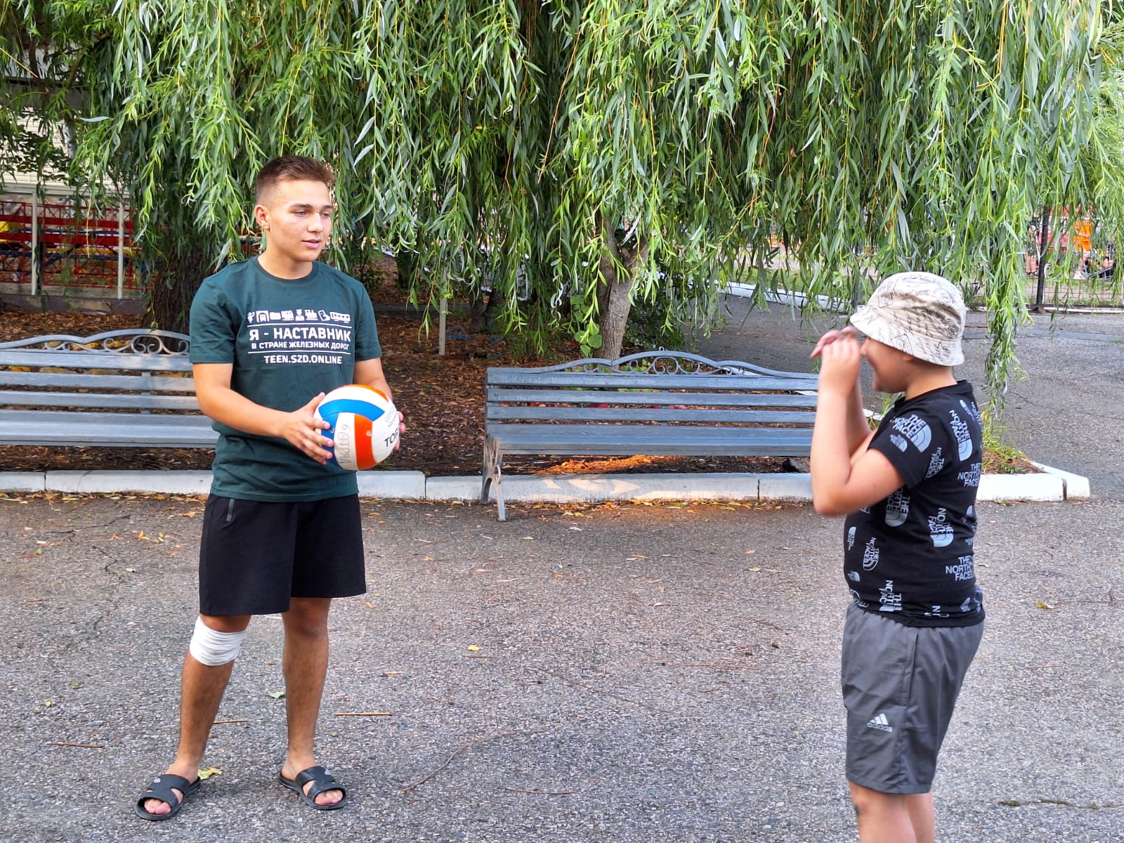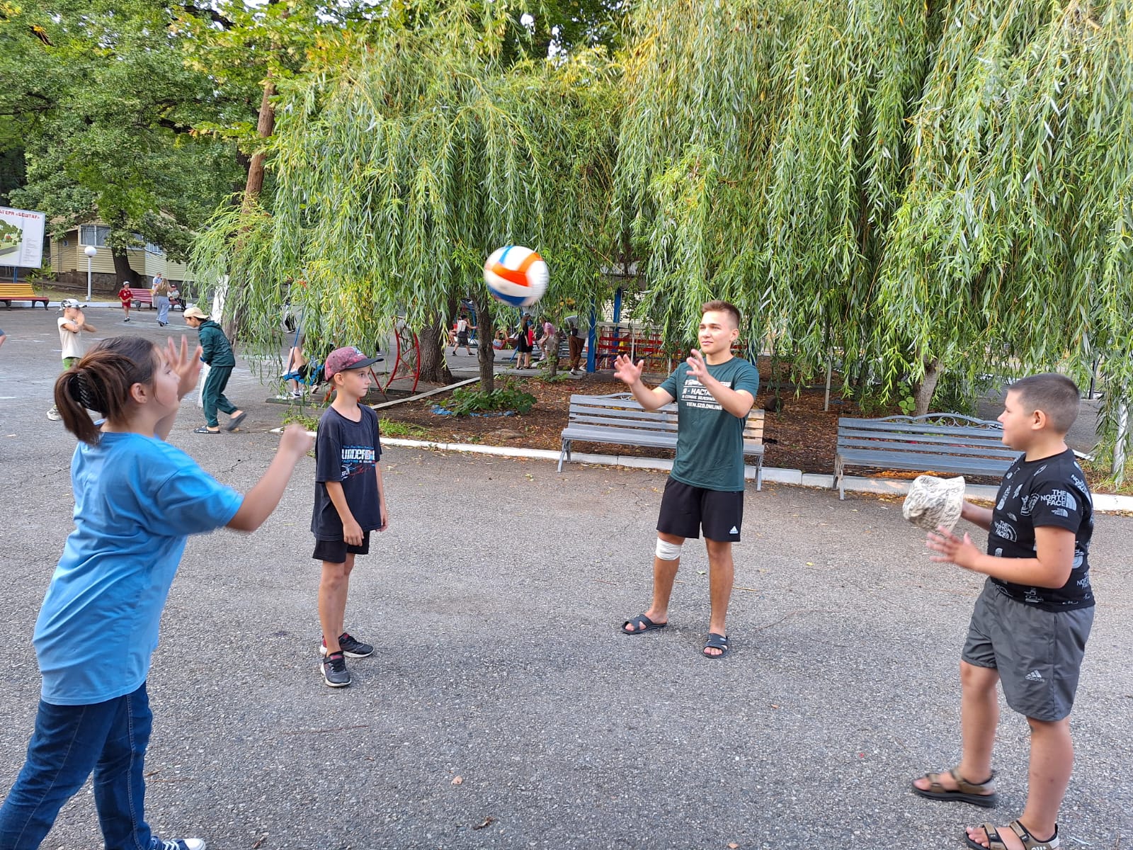 На третьей смене у инструктора по физической культуре появился помощник! Теперь еще больше спорта в нашем лагере. Активный, спортивный наставник играет с ребятами из младших отрядов.