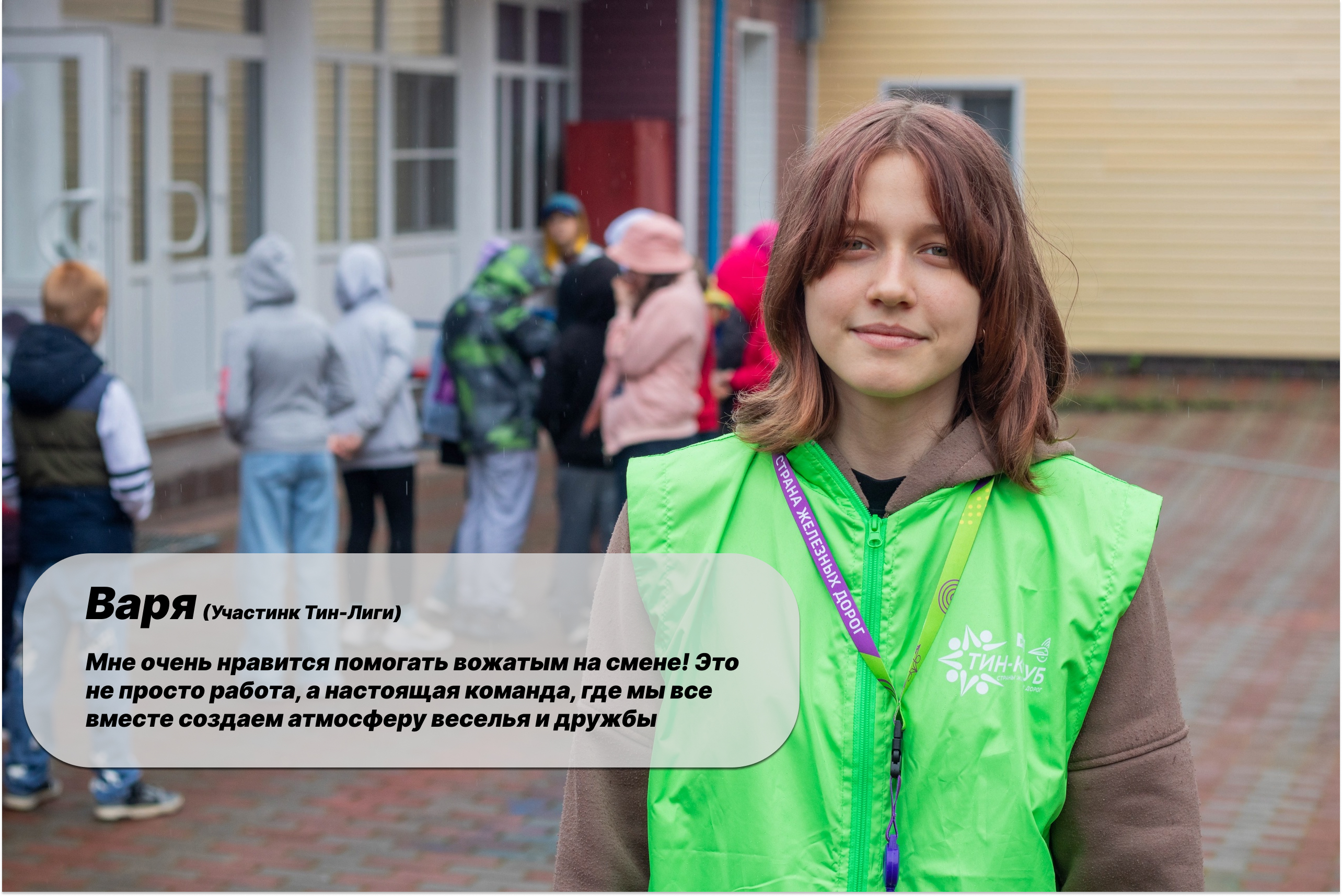 «Мне очень нравится помогать вожатым на смене! Это не просто работа, а настоящая команда, где мы все вместе создаём атмосферу веселья и дружбы»,