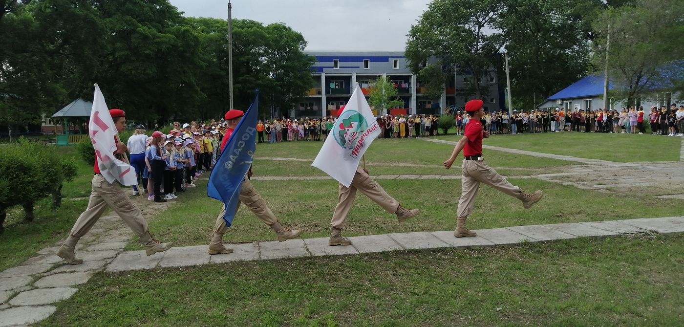 Каждое утро в смене начинается линейкой, на которой звучит гимн РФ, историческая справка о военных событиях в эту дату, настрой на день.