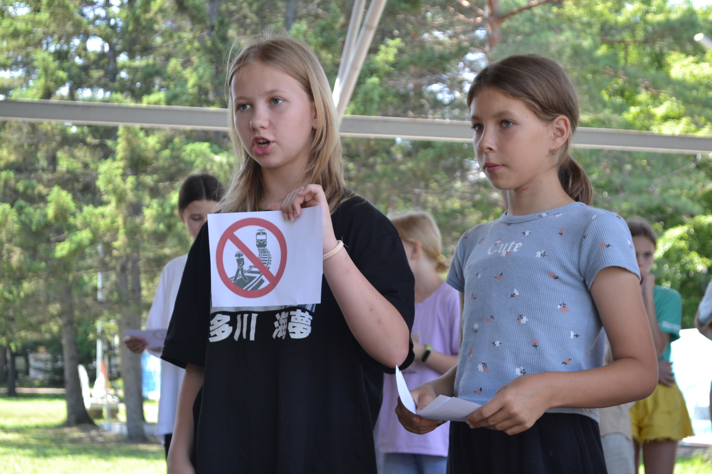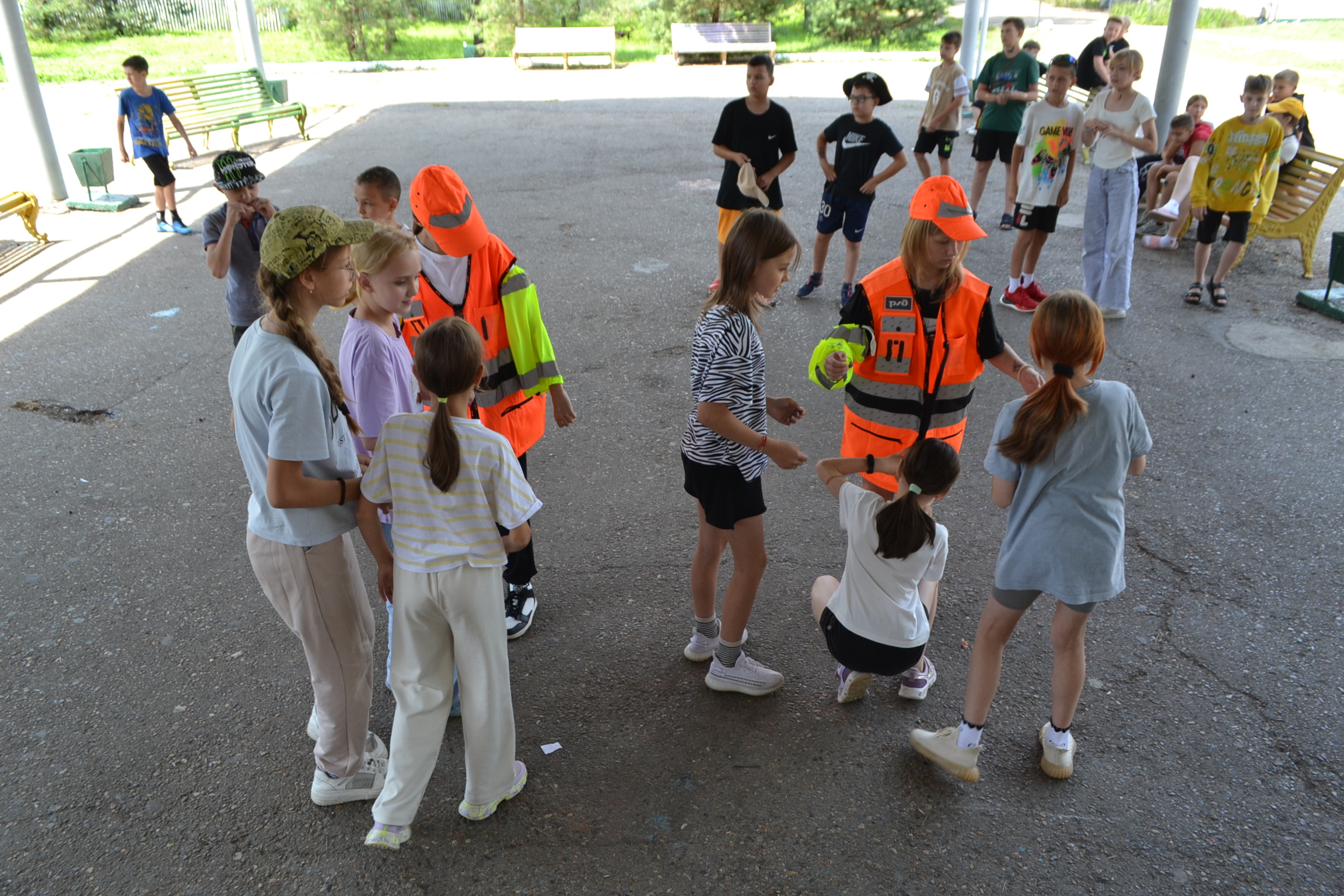 И по этому сегодня состоялась игра, во время которой дети, буквально на собственном опыте изучали различные предупреждающие знаки, которые они могут увидеть возле железной дороги и на вокзале. А ещё они они узнали о том, что как нужно правильно переходить железнодорожные пути, и что при этом категорически нельзя делать. Так же они узнали по чему одежда работников такая яркая - оранжевая и салатовая, чтобы во время выполнения работ их было можно было заметить издалека.
