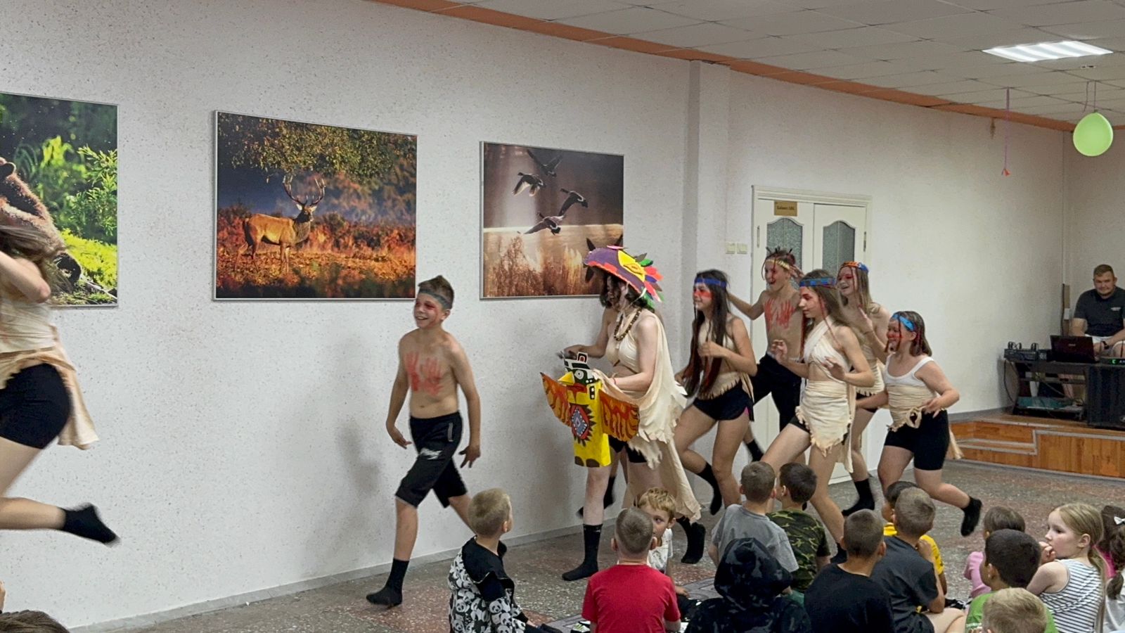 Творческая атмосфера царила на протяжении всего мероприятия. Дети с удовольствием примеряли на себя роль индейцев, учились их приветствиям и участвовали в различных играх. Костюмированное представление позволило ребятам не только весело провести время, но и узнать больше о культуре и быте коренных народов Америки.