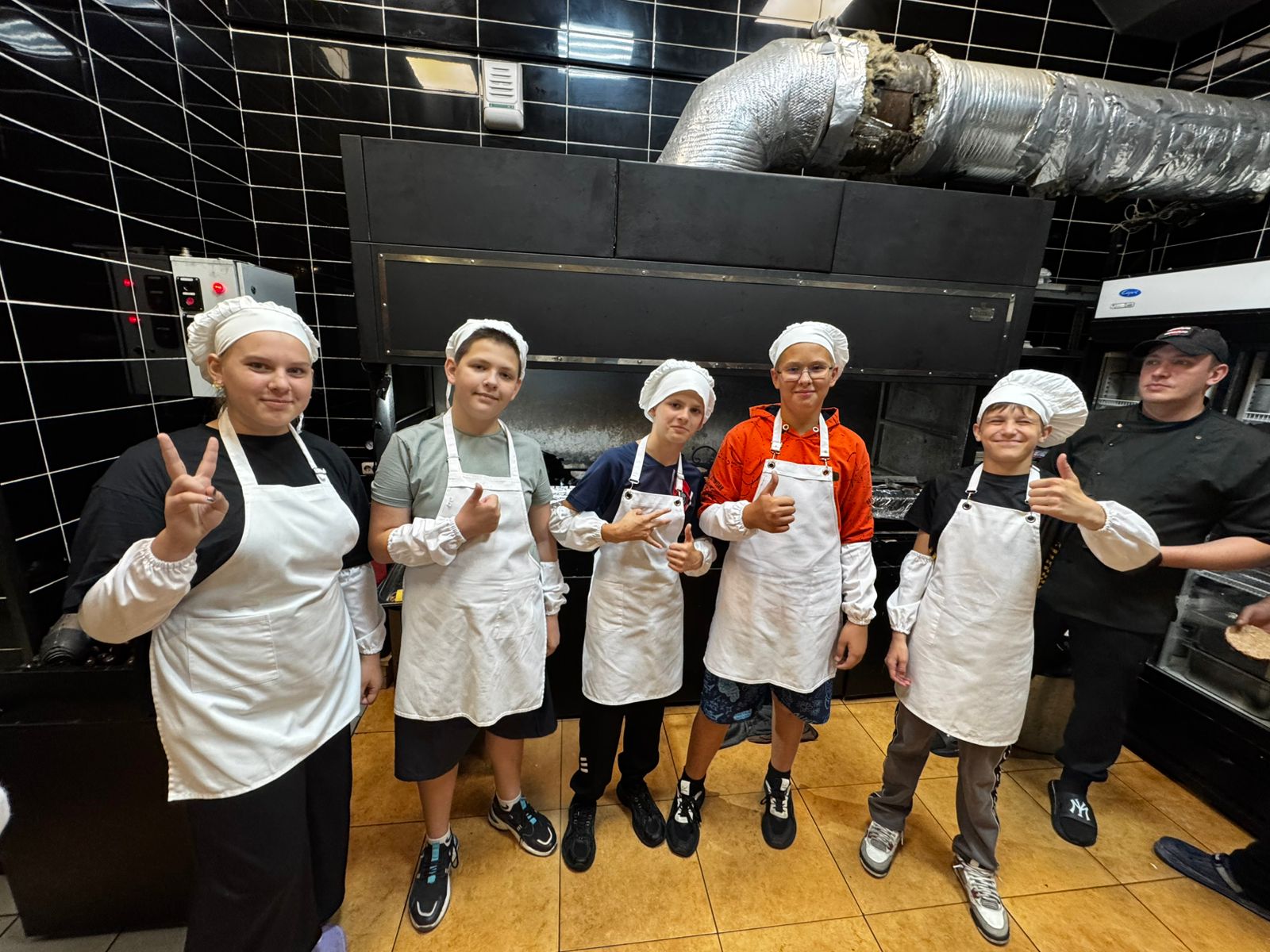Профессиональные повара ресторана встретили юных кулинаров и провели их в специально оборудованную кухню. Под чутким руководством опытных мастеров ребята освоили все этапы приготовления классического бургера: от формирования котлет до финальной сборки блюда.