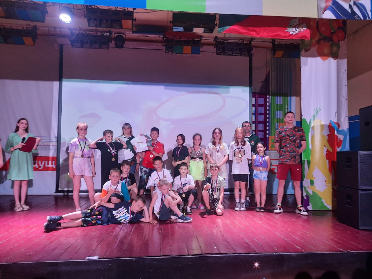 Среди команд отрядов проходили турниры по хоккею с мячом, настольному теннису, баскетболу и футболу в трех возрастных группах. И вот вчера состоялось торжественное подведение итогов спартакиады! Все серьезно и торжественно, с грамотами и медалями.