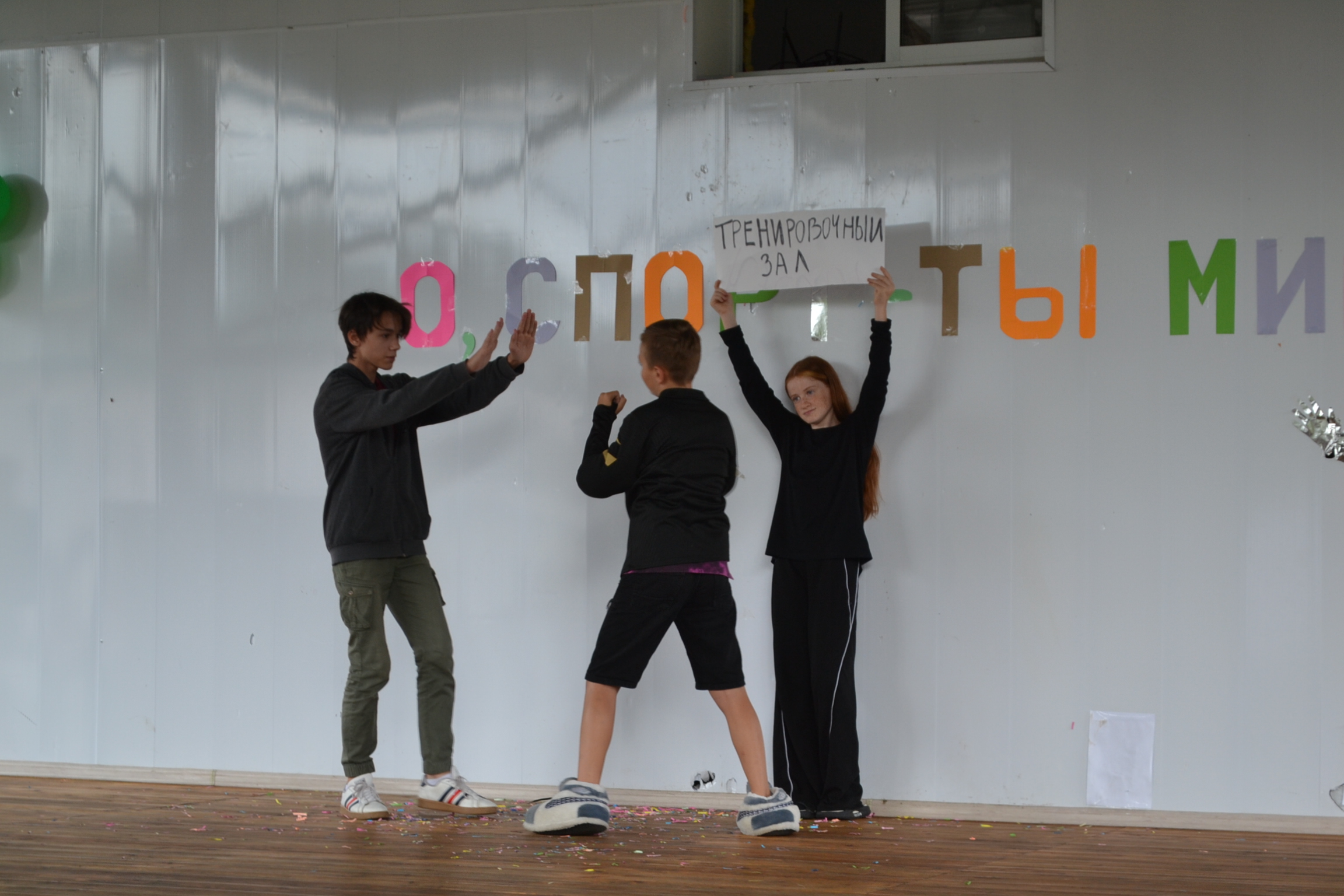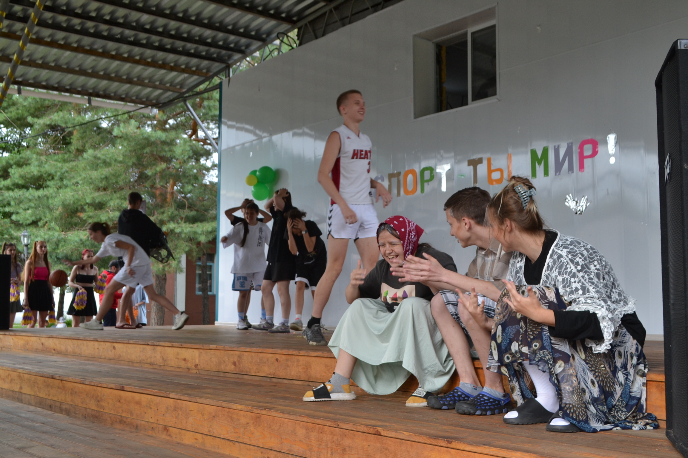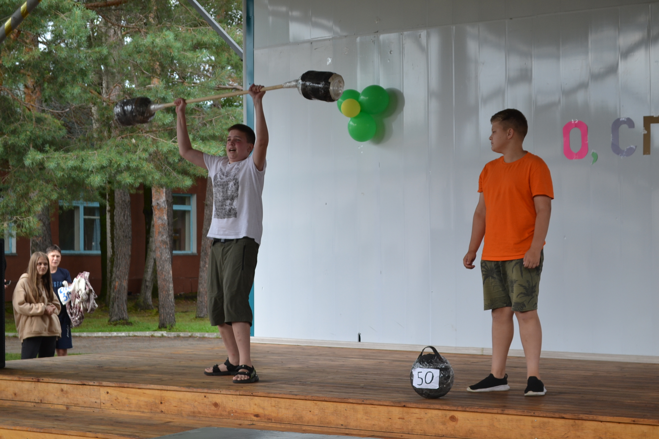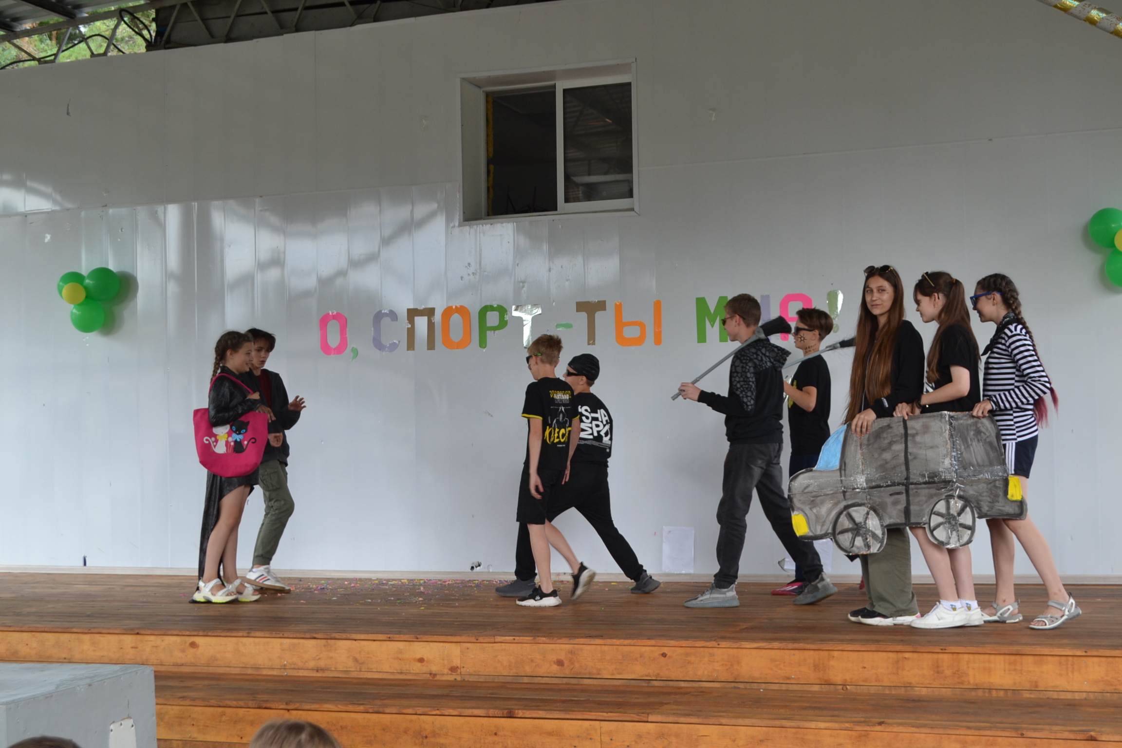 На лагерной сцене обыгрывались различные шуточные ситуации, через которые детям показывали, что бывает с людьми, которые не уделяют внимание себе, через развитие своего тела. Ведь те кто избегает физического развития слабы, не выносливы, пасуют перед простейшими препятствиями. А физическая культура помогает преодолевать не только себя, но и подготавливает к встрече с трудностями в жизни, которые удаётся преодолевать значительно более легче, а порой и совсем не заметно.