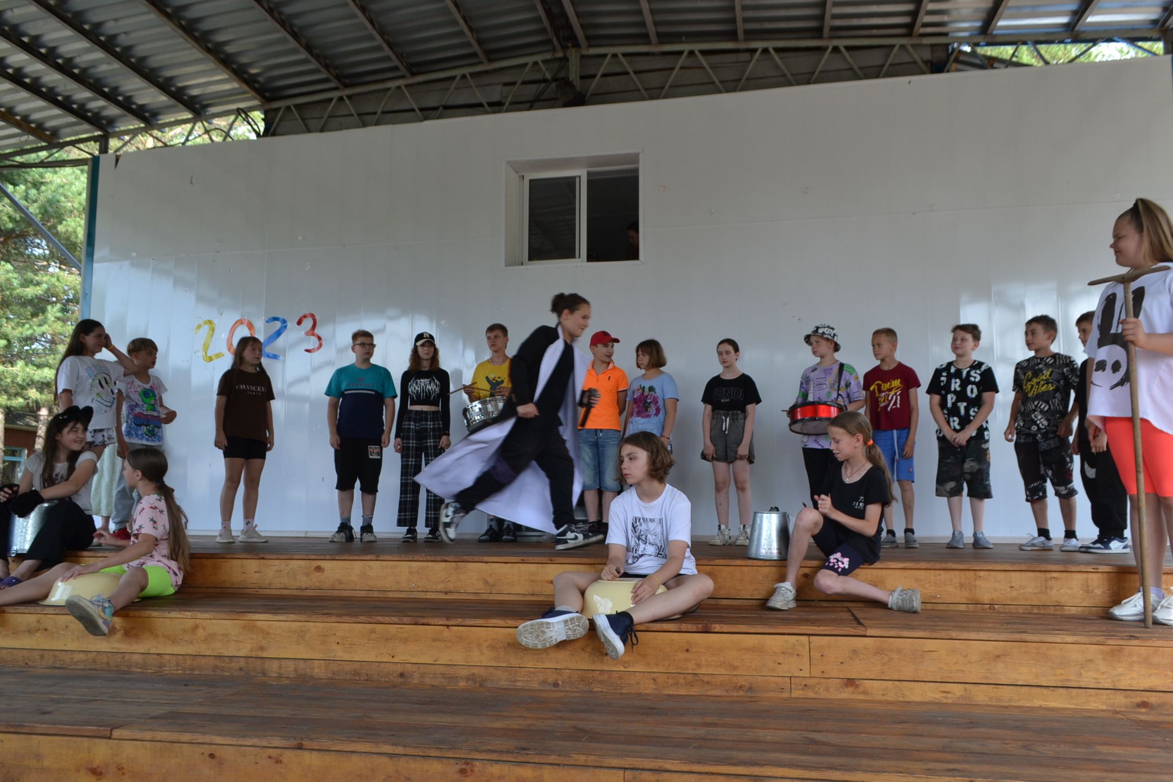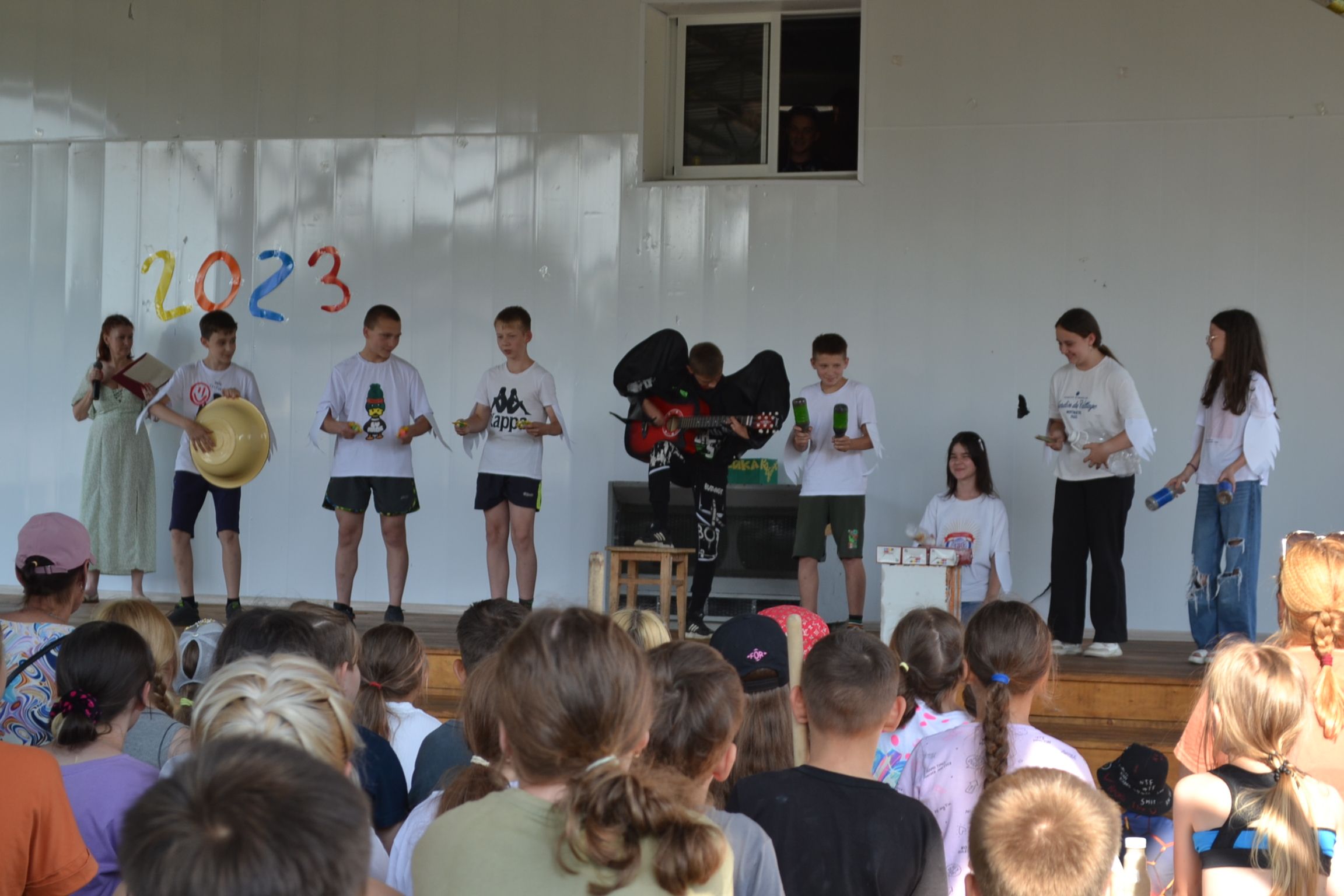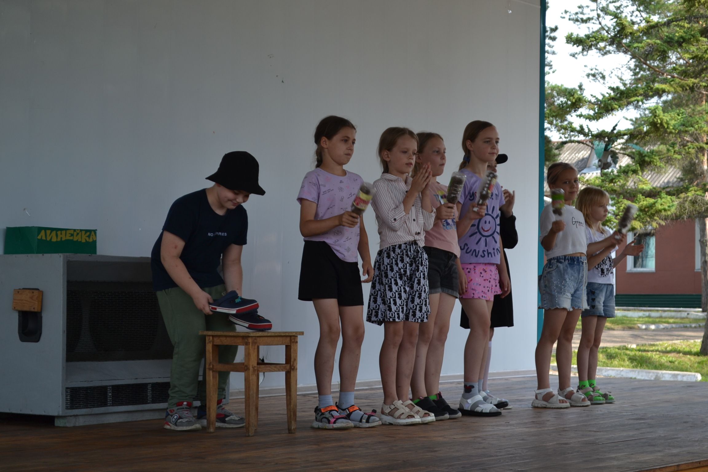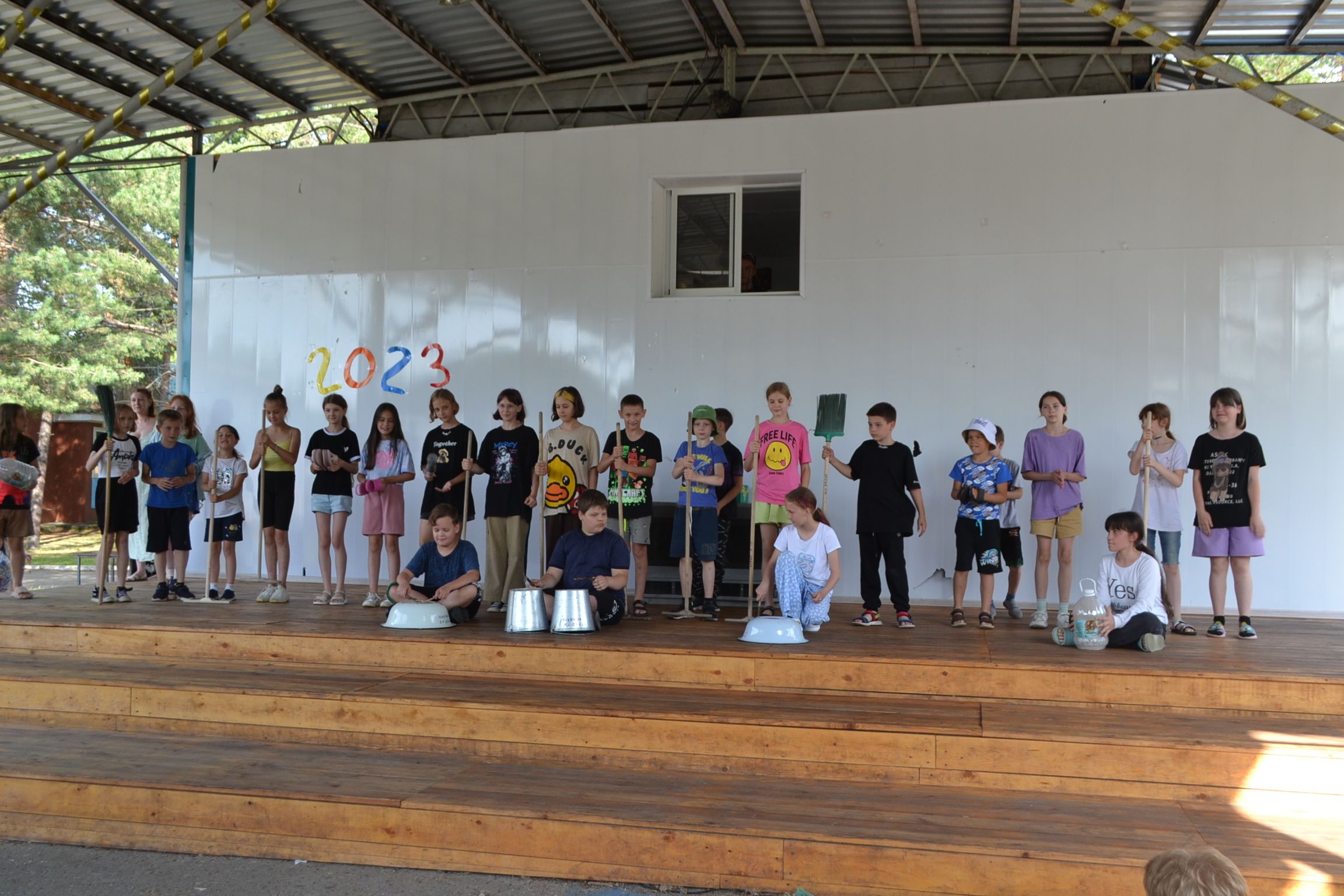 Оркестр может быть шумным! Если это "Шумовой оркестр". Под таким названием прошло вечернее сценическое мероприятие, на котором детям нужно было исполнить музыкальную композицию шумовыми музыкальными инструментами. Но при этом эти музыкальные инструменты должны быть изготовлены самими детьми. Они использовали подручные материалы - из пустых бутылок из под ряженки и йогурта получаются отличные маракассы, а из рифлёного пластмассового чемодана музыкальная тёрка или фроттоир. Но Дети не остановились исключительно на повторении известных музыкальных композиций, многие отряды разыгрывали короткие сценки, поучительного или юмористического характера.