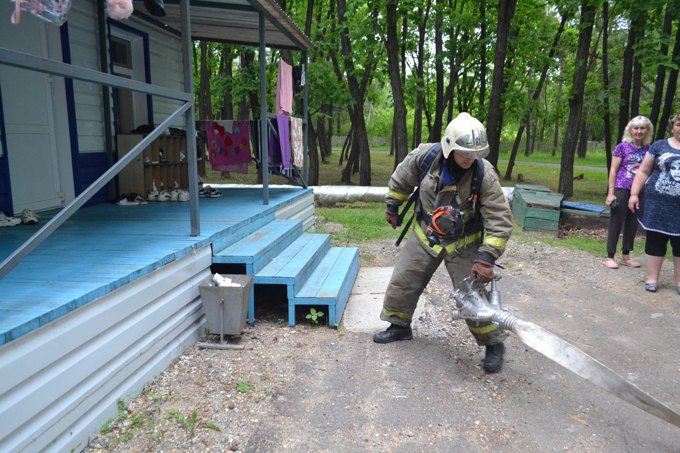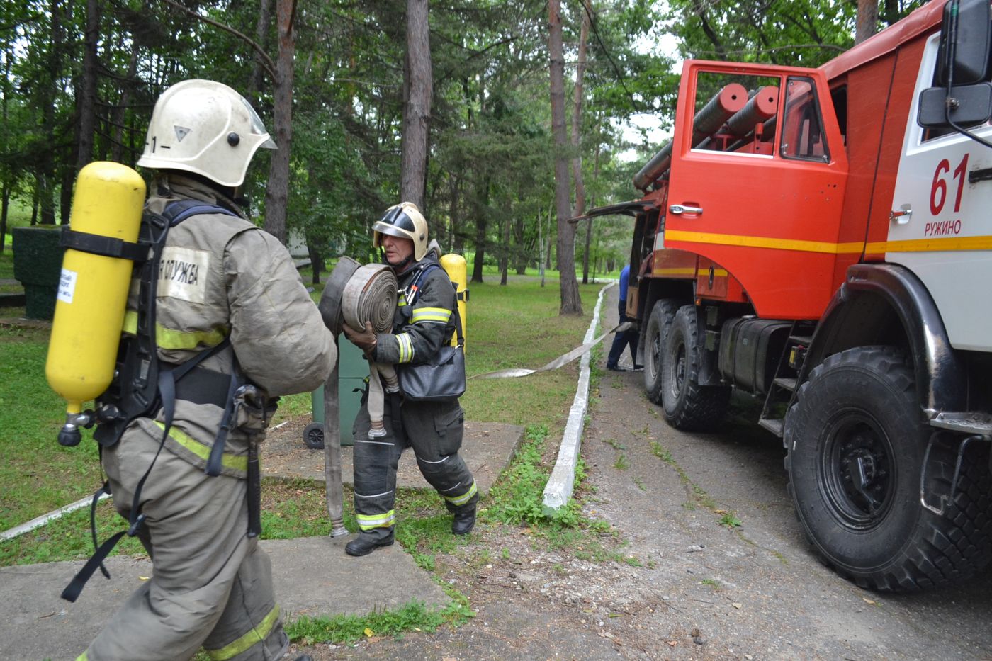 Сегодня прошли противопожарные учения в лагере Ружино. Сотрудники МЧС и Противопожарной службы совметсно с сотрудниками детского лагеря отработали действия при возникновении возгорания. Так же детям было рассказано о работе пожарных, показана техника.