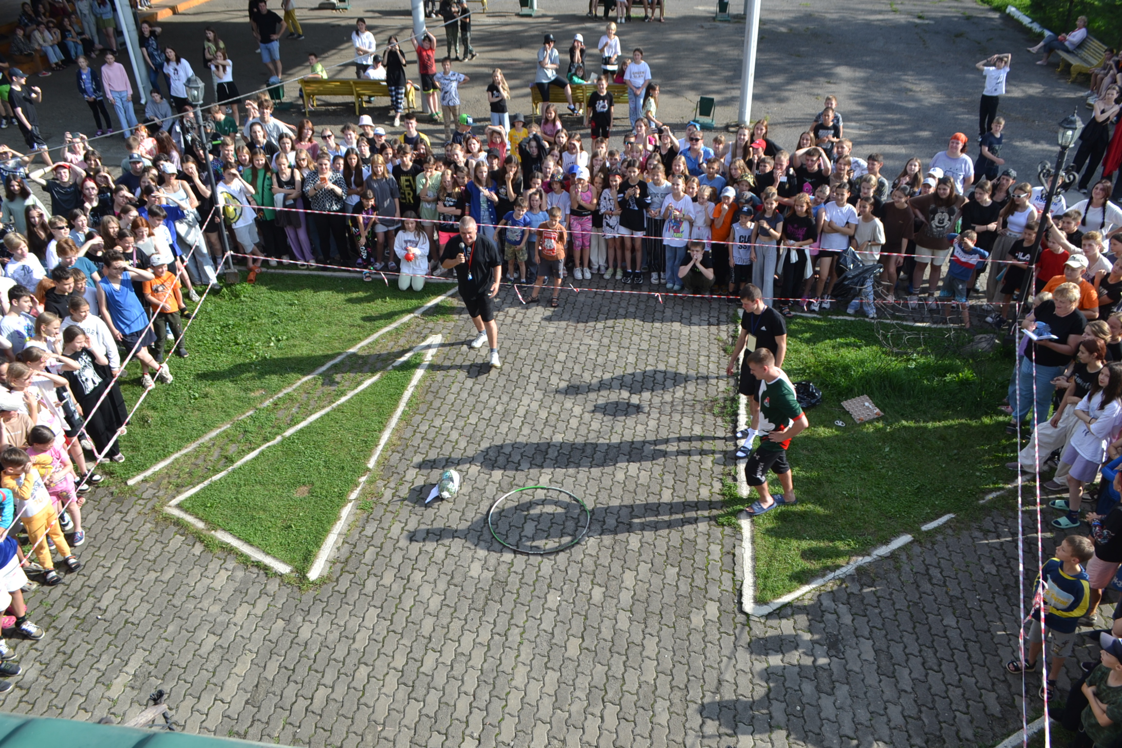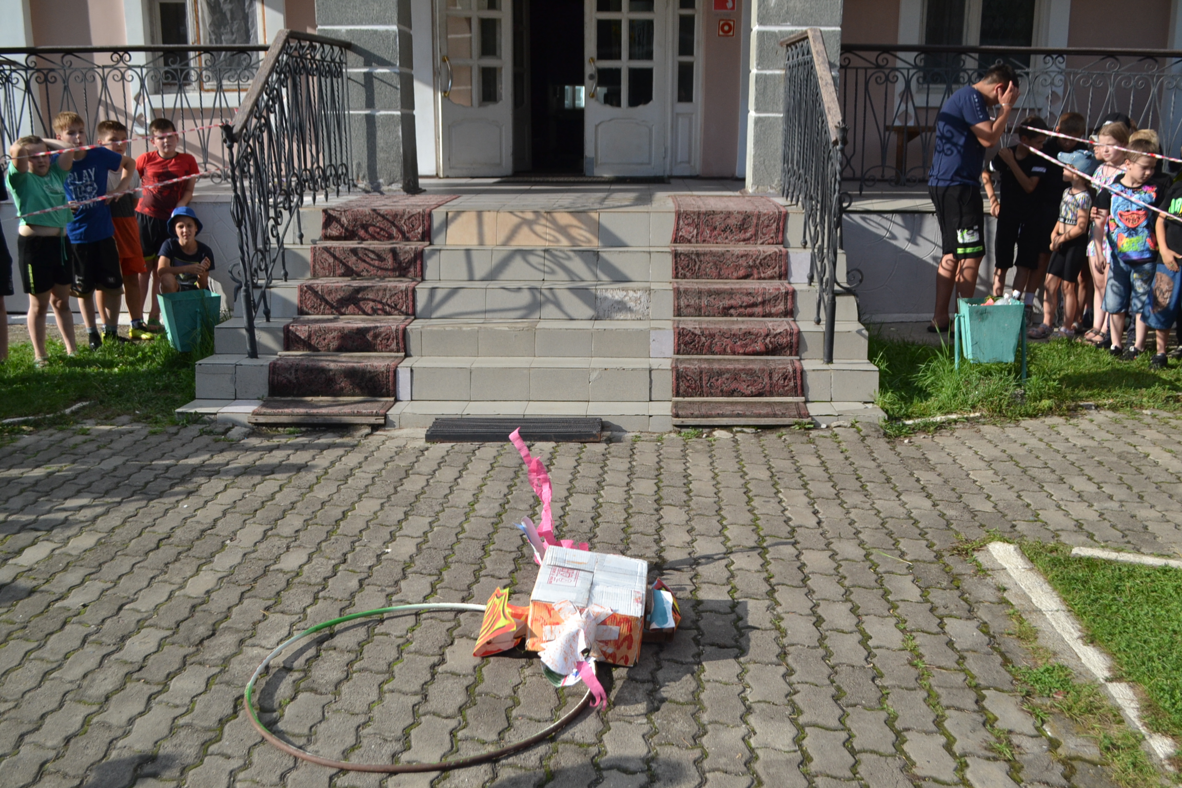 Заключительный же этап — самый зрелищный и эмоционально яркий. Вожатый, с балкона на втором этаже, должен попасть в обруч лежащий на земле, но при этом яйцо, внутри оболочки, должно остаться целым.