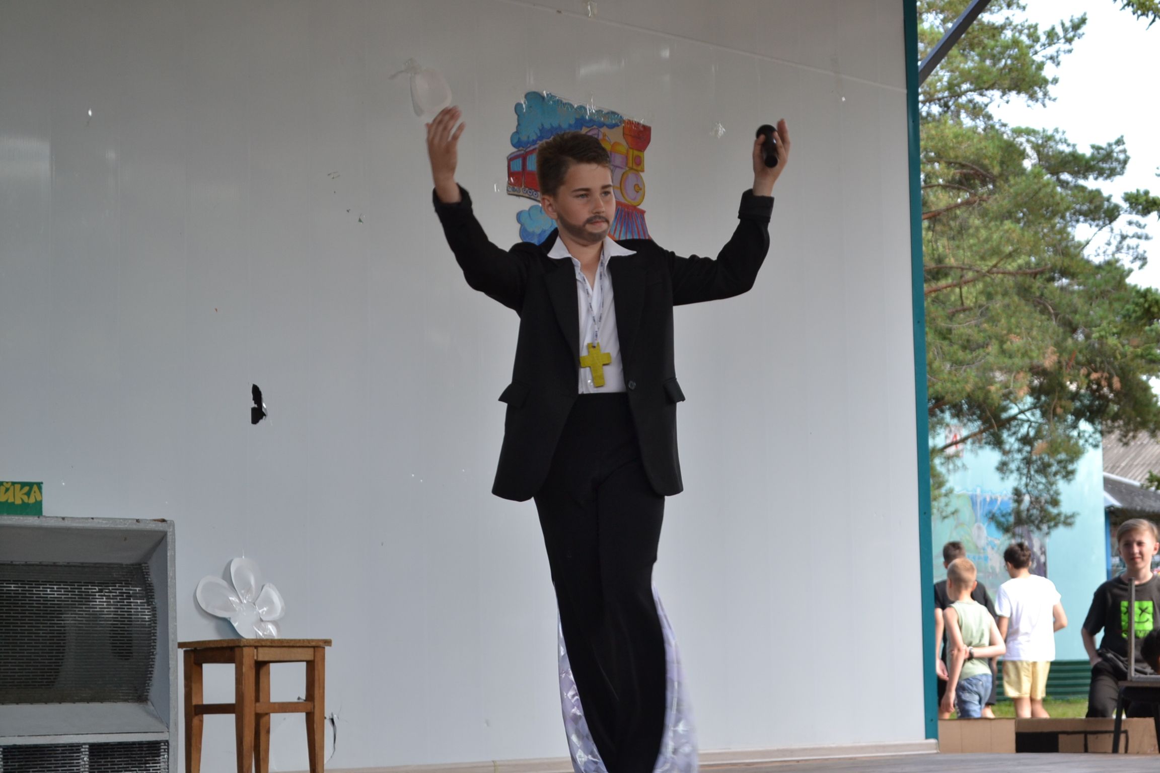 Прошло вечернее сценическое мероприятие "Точь-в-точь". Дети, выступавшие на сцене, пародировали известных певцов и артистов. Но одним из самых замечательных пародируемых персонажей был - водяной, знаменитый мультипликационный персонаж. Это помогает детям развивать свои сценические таланты.