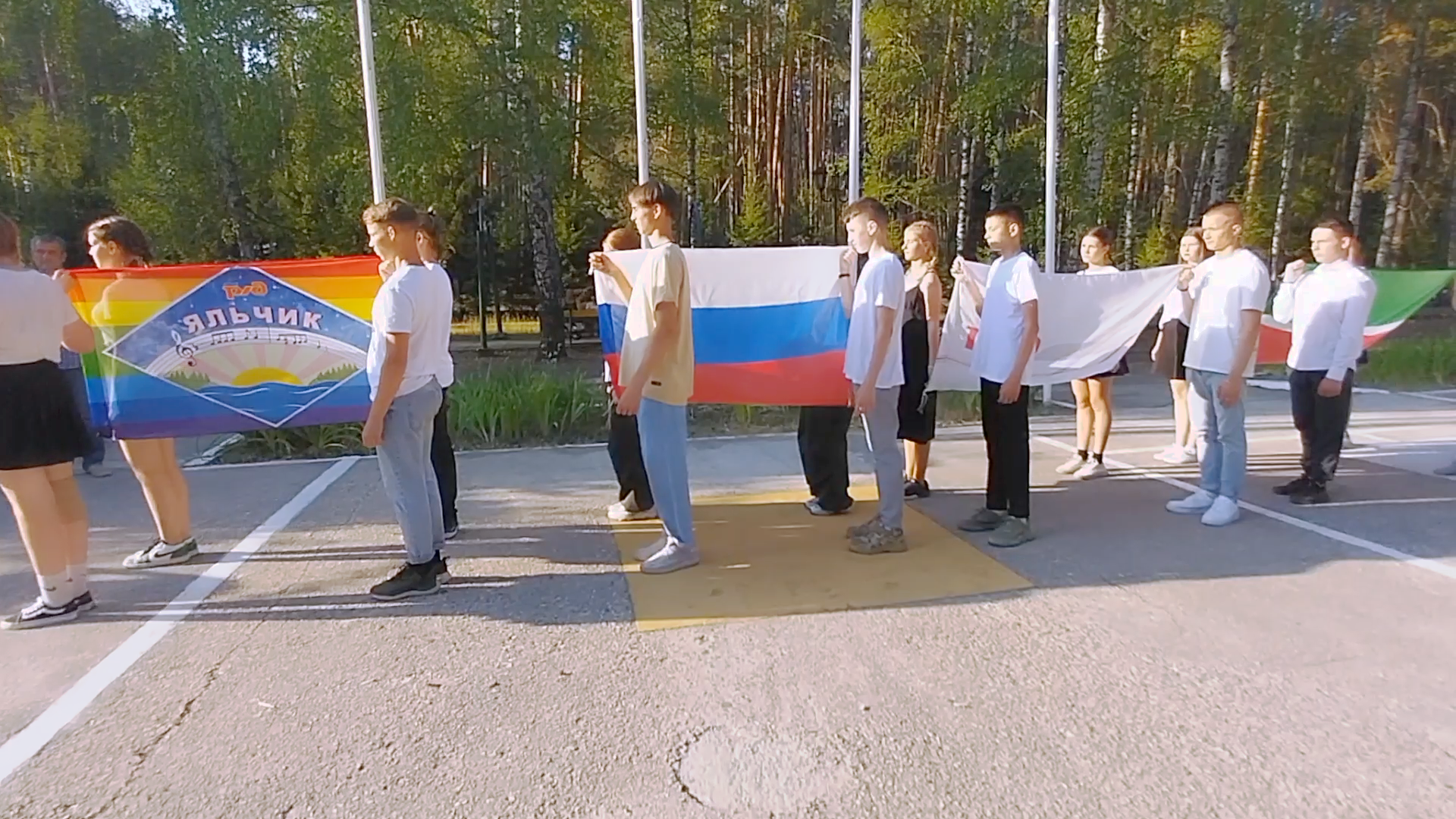 Сегодня в нашем лагере прошло открытие 2 лагерной смены лето 2023 и линейка с поднятием флагов Российской Федерации, Татарстана, РЖД и лагеря "Яльчик"!