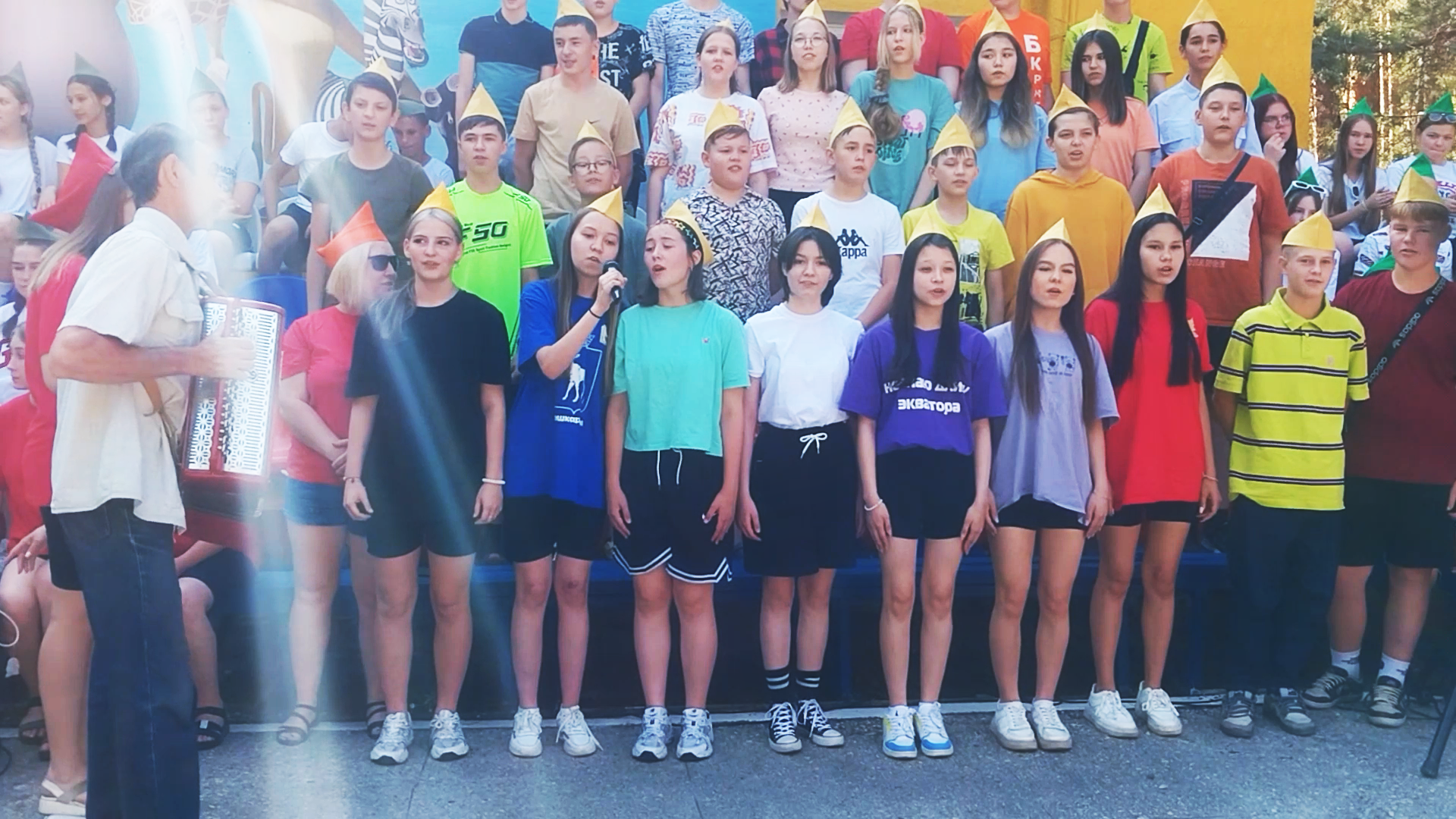 Отряды подготовили к сдачи рапорта и конкурсные номера. В завершении весь лагерь спел гимн лагеря "Яльчик"!
