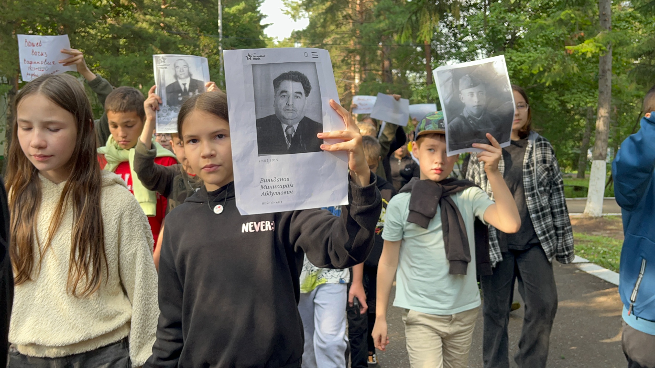 К подготовке акции подключились не только ребята и вожатые, но и родители. Вместе они собрали фотографии фронтовиков — своих дедов и прадедов, участников Великой Отечественной войны. Эти портреты дети с гордостью пронесли в колонне Бессмертного полка.