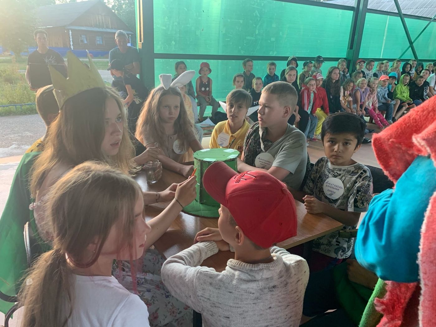 Вчера у нас состоялся чёт нечет «Что? Где? Когда?». Команды из детей и вожатых, которым предстояло пройти несколько туров для того, чтобы узнать кто же лучший знаток! Первый тур состоял из перечня вопросов, которые задавались каждой команде по очереди. Вторым туром стал блиц для капитанов команд. А пока наши капитаны участвовали в блиц опросе, команда придумали фразы-перевертыши из различных крылатых фраз - третий тур. Четверым туром стал чёрный ящик. Каждая команда могла задать вопрос о том, что находиться внутри, но только ответ от ведущего был только «да» или «нет». Ну и пятый тур был самым сложным. Команде было дано слово «Развлекаловка» и команды должны были составить наибольшее количество слов, которые складываются из букв этого слова.