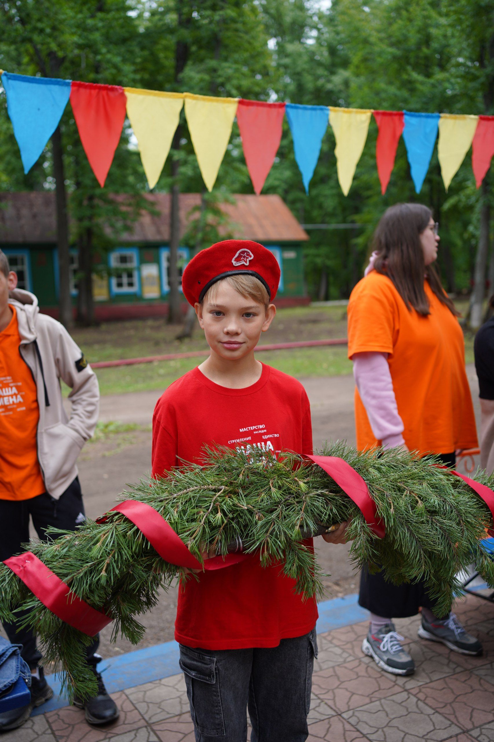 С самого утра орлята собрались на центральной площади. Ребята стояли в строю, слушая речи вожатых и директора лагеря, которые рассказывали о значении этого дня для нашей страны.