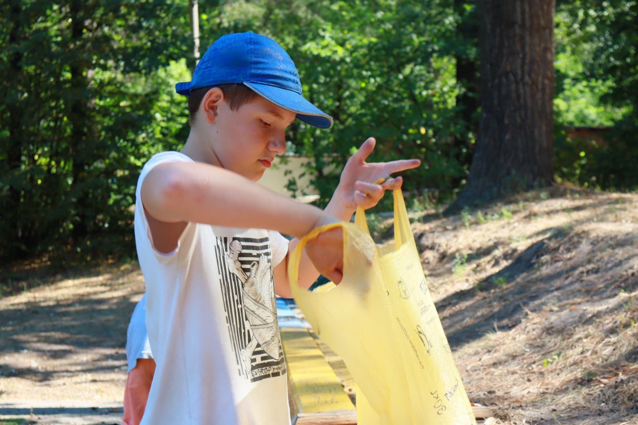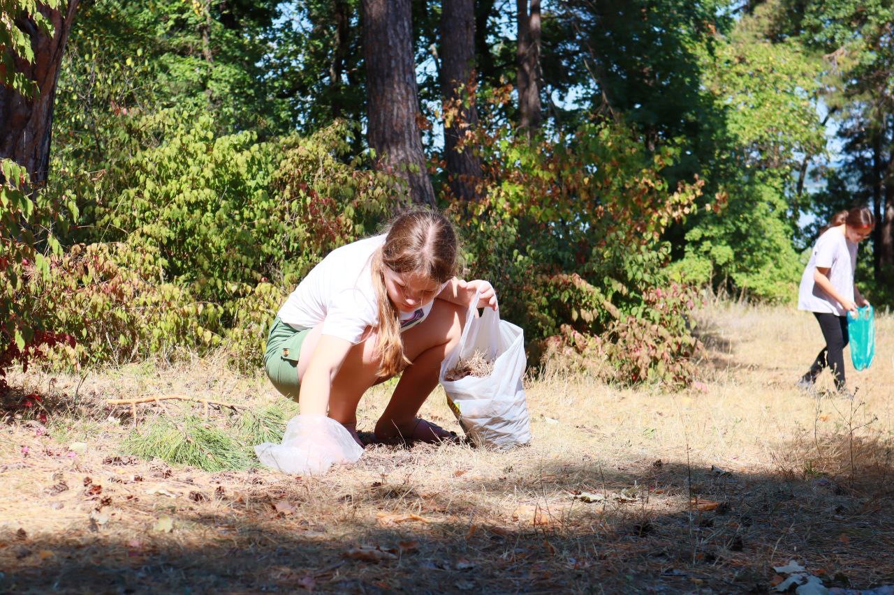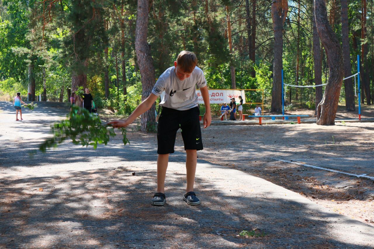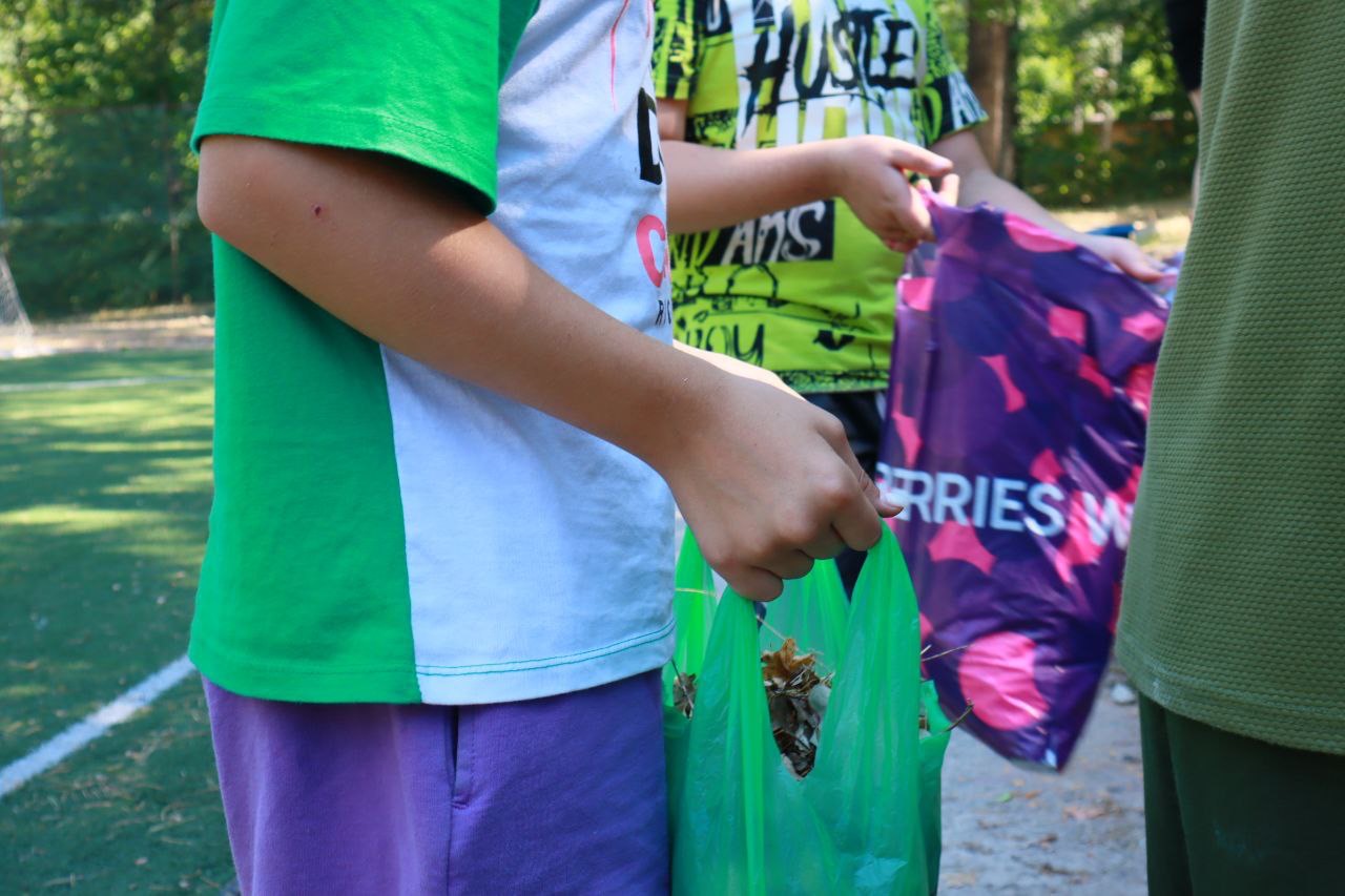 Всё по настоящему! Ребятам нужно убрать на территории лагеря шишки, иголки, и остальной мусор, чтобы в конце дня получить заработную плату за свой труд!