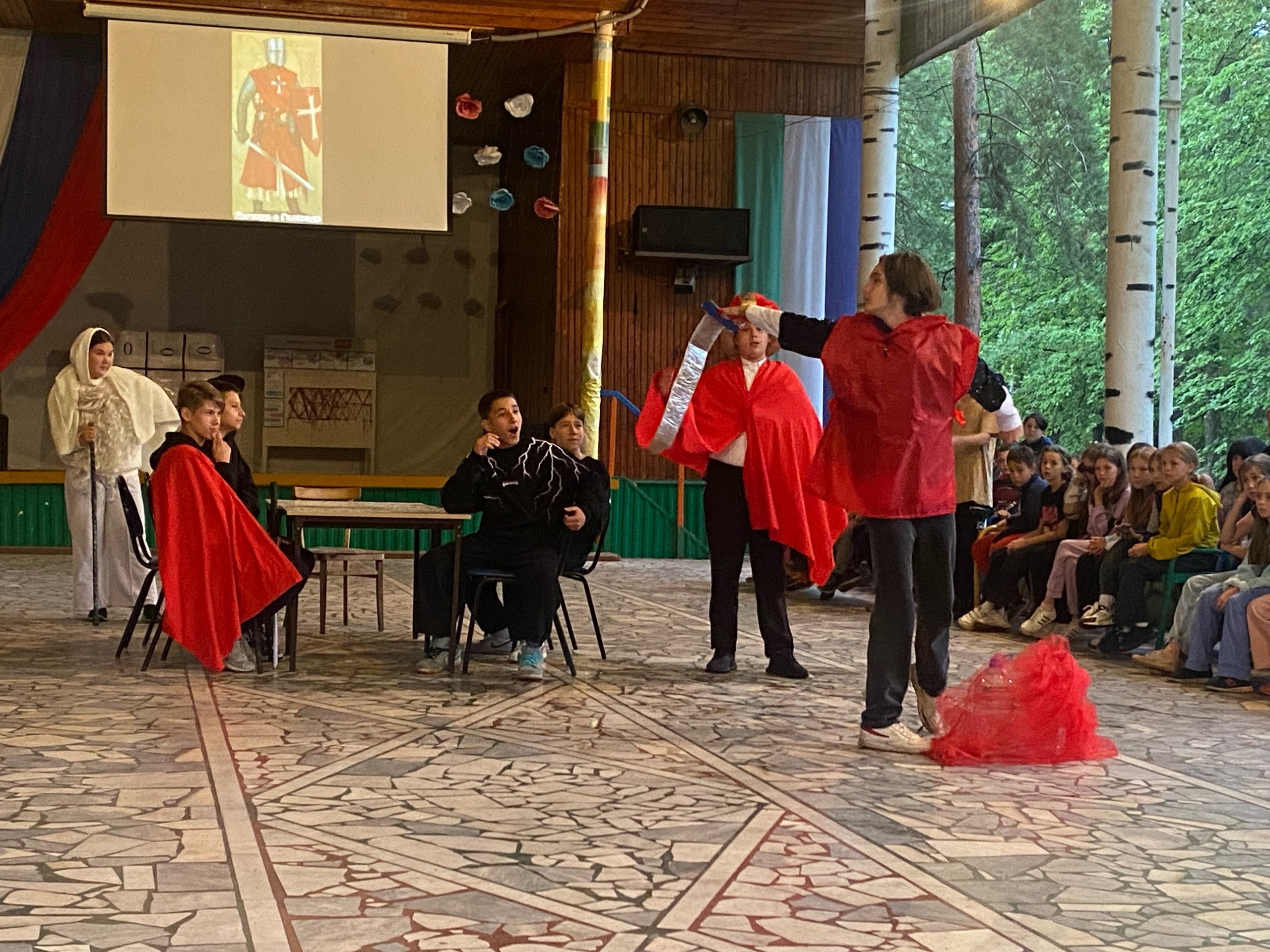 А наши Гагаринцы сегодня представили разных рыцарей, рассказали и показали их историю, надели на себя амуницию:8 - Чёрный рыцарь21 - Галахад567- легенда о Коловрате910 -Лоэнгрин (рыцарь Лебедя)11-12 отряд «рыцари круглого стола» (король Артур)13-14 отряд - легенда о Тристане15-16 отряд Легенда о Ланселотте Озёрном.Мы стали свидетелями рыцарских боев и прониклись историей красивой любви. Эстрада окунулась в средневековье.