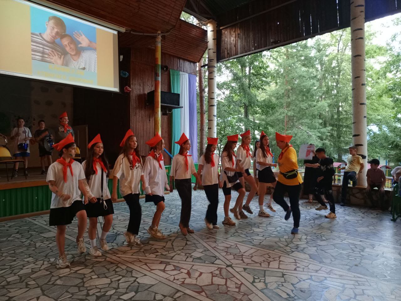 Ребята из разных отрядов выбрали культовые российские фильмы и под музыку представили зрителям ремейки легендарных картин: