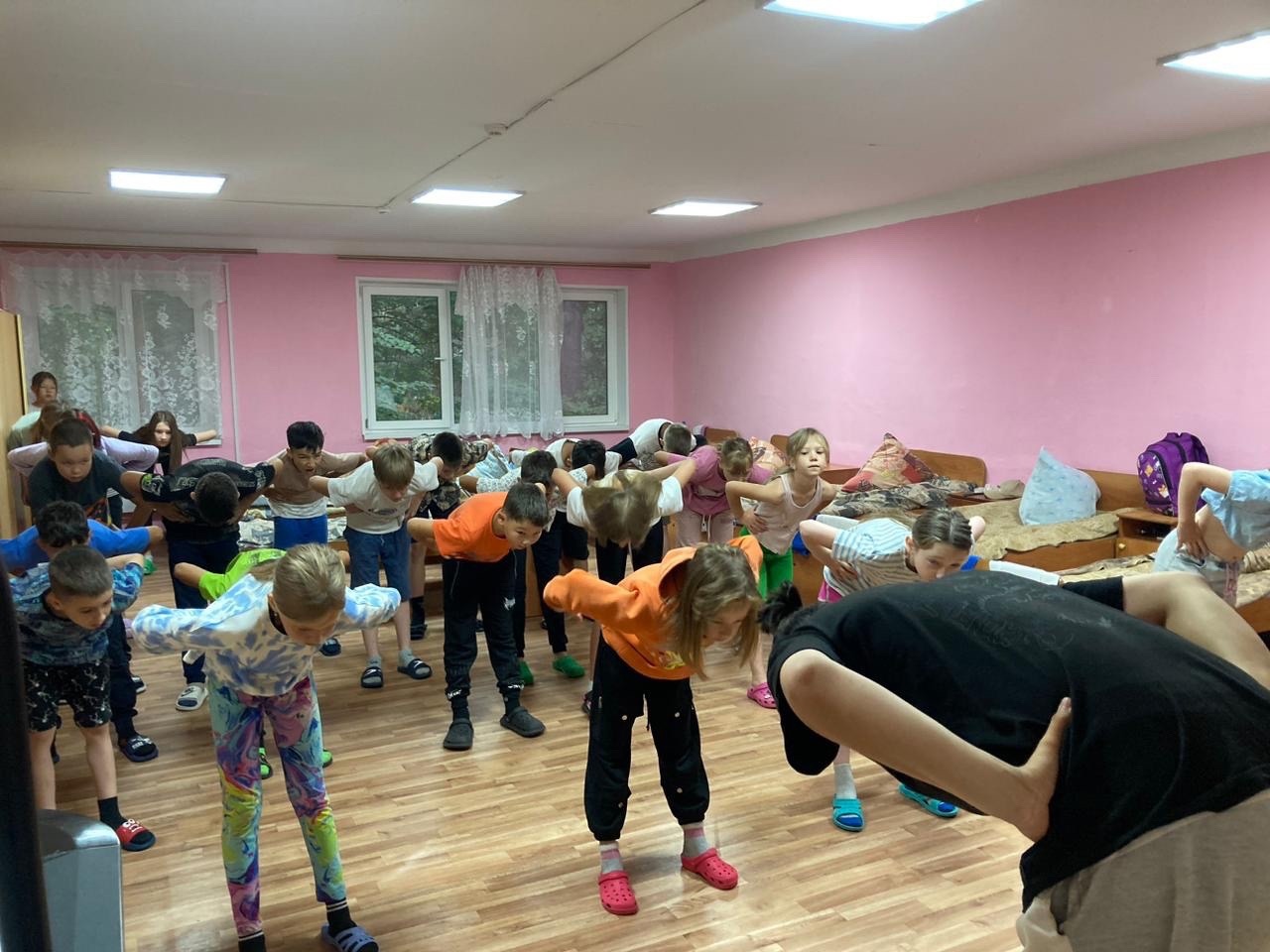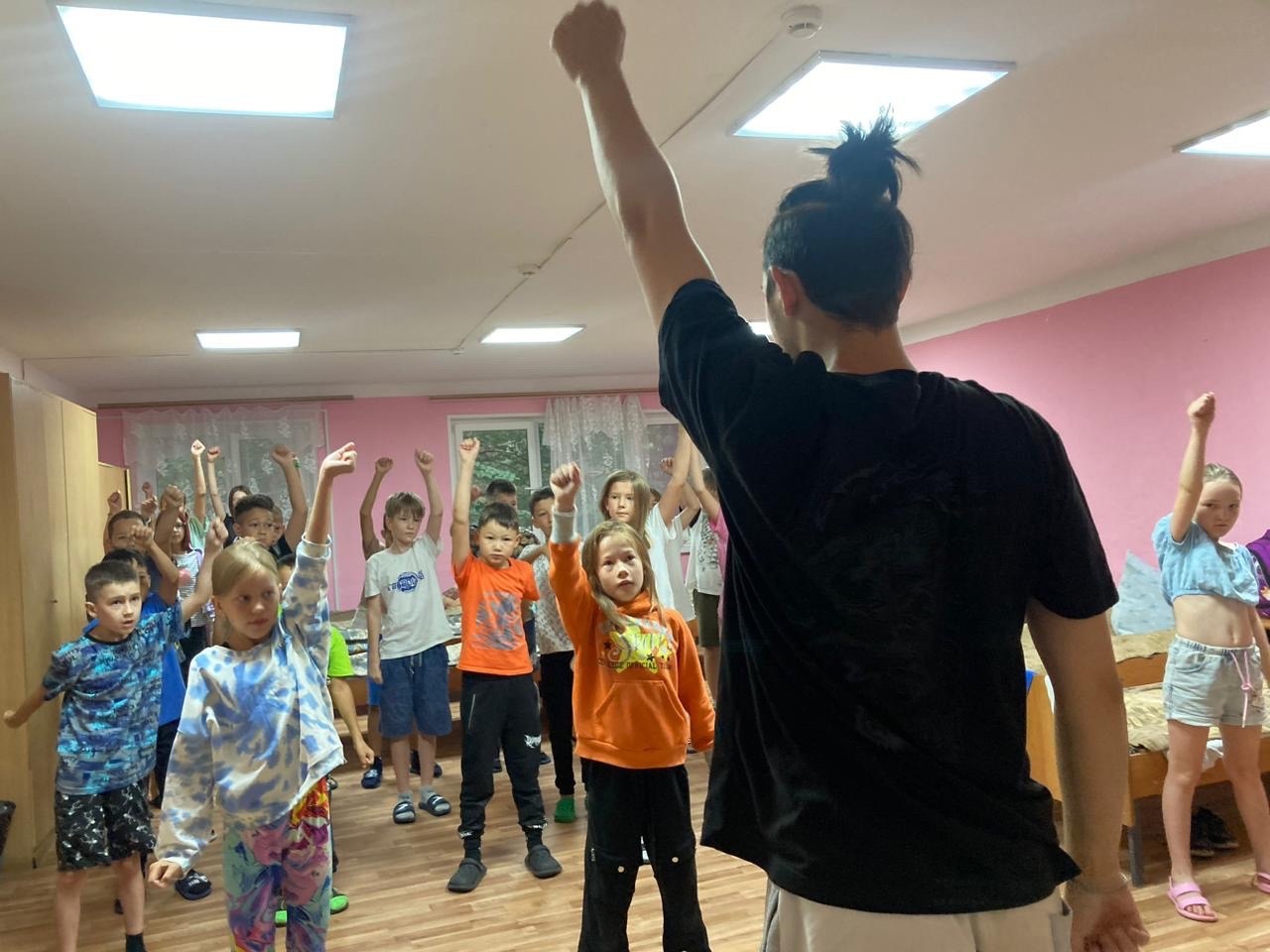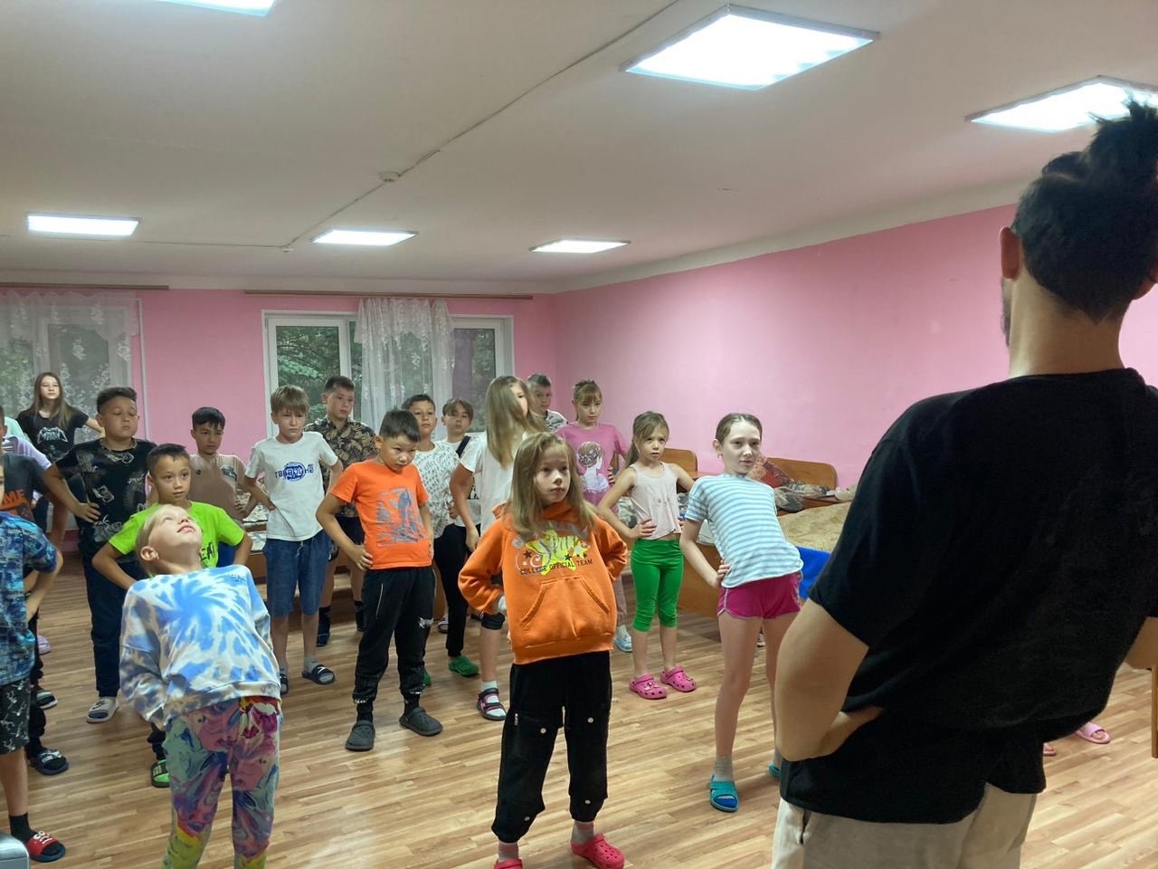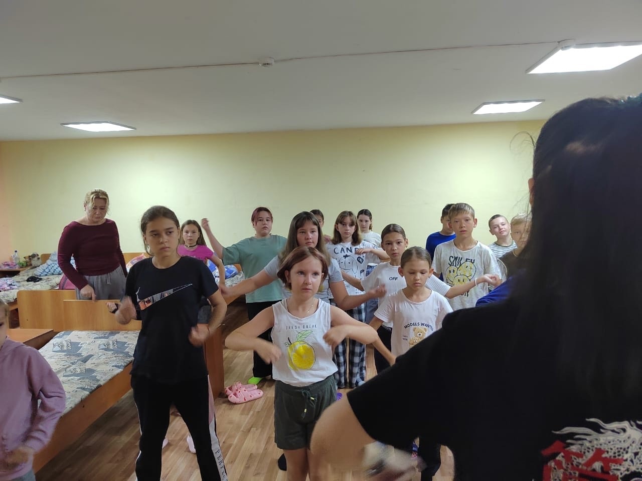 Вожатые показывала движения, которые необходимо выполнять, дети с удовольствием повторяли их. Поэтому с уверенностью можно сказать – день в лагере начинается с улыбок и позитивного настроя!