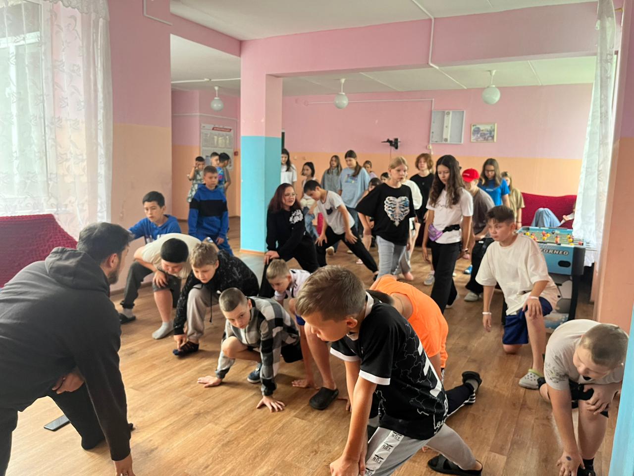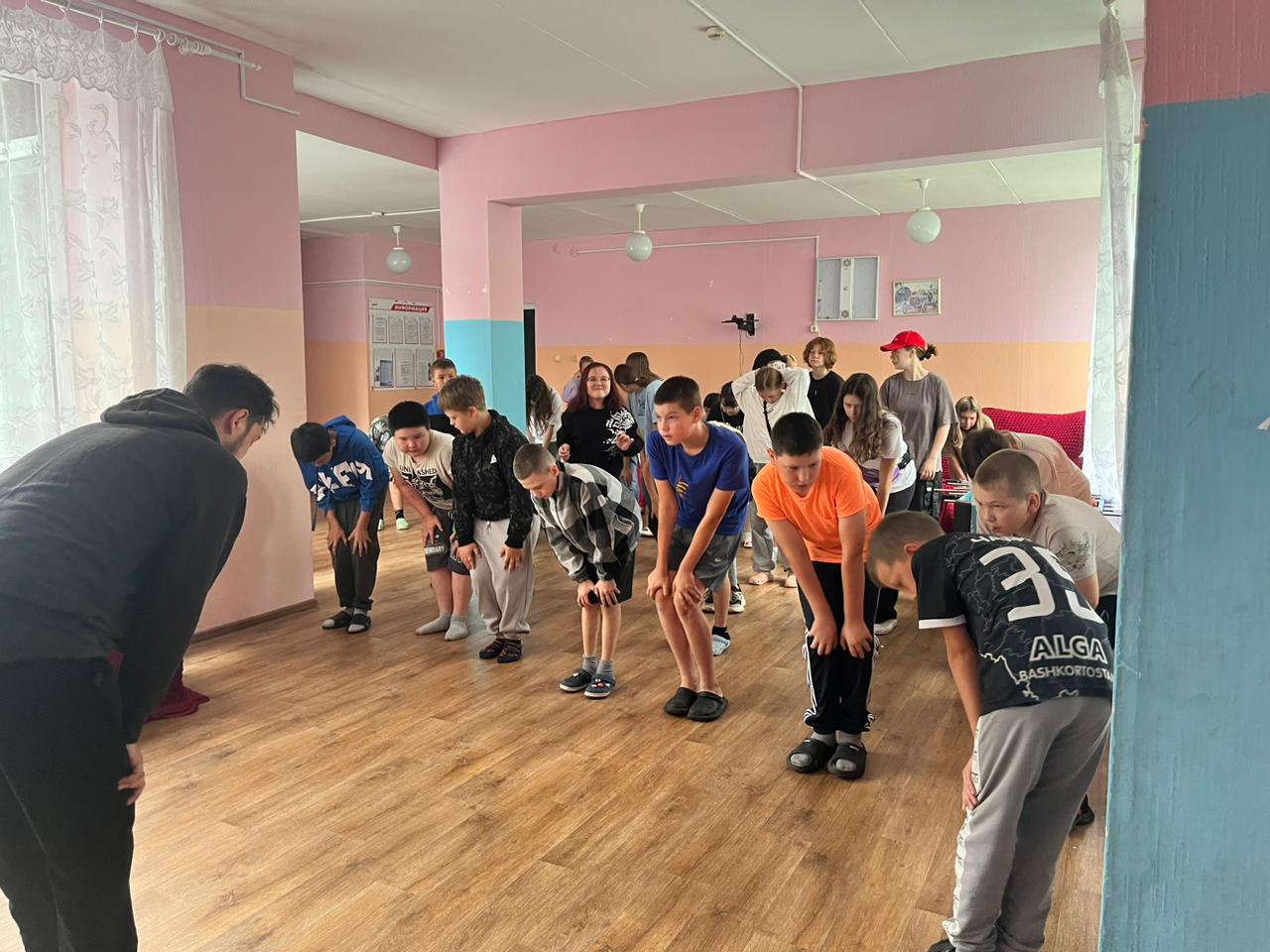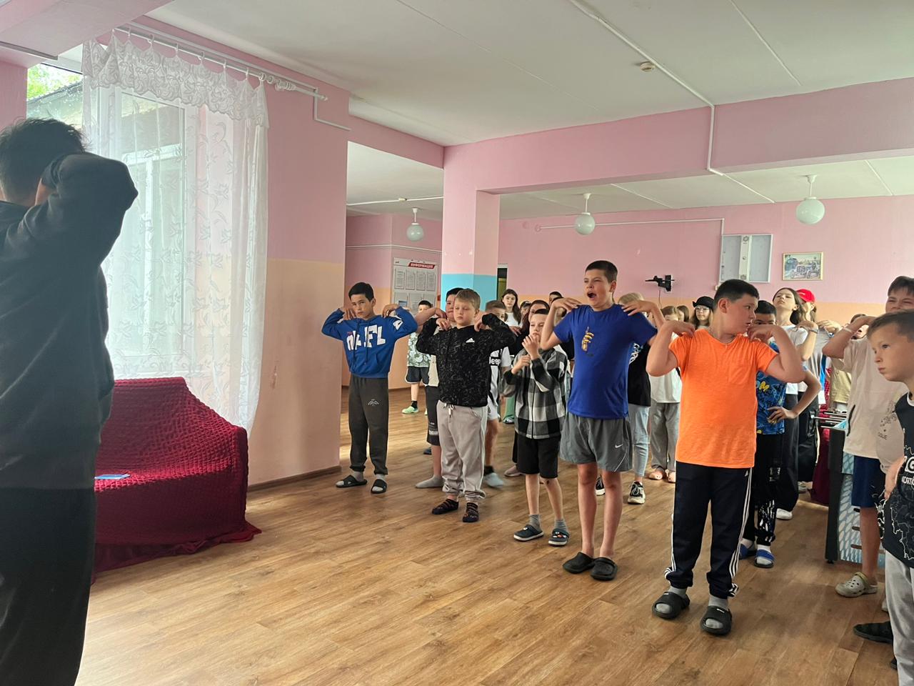 День в лагере всегда начинается с зарядки «Бодрое утро», которая традиционно проходит на улице. Но сегодня из-за непогоды, зарядка прошла в корпусах. Физрук Реваль показывал движения, которые необходимо выполнять, дети с удовольствием повторяли. Поэтому с уверенностью можно сказать – день в лагере начинается с улыбок и позитивного настроя!