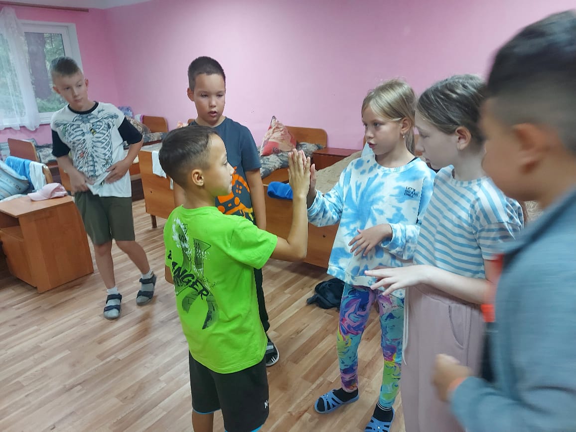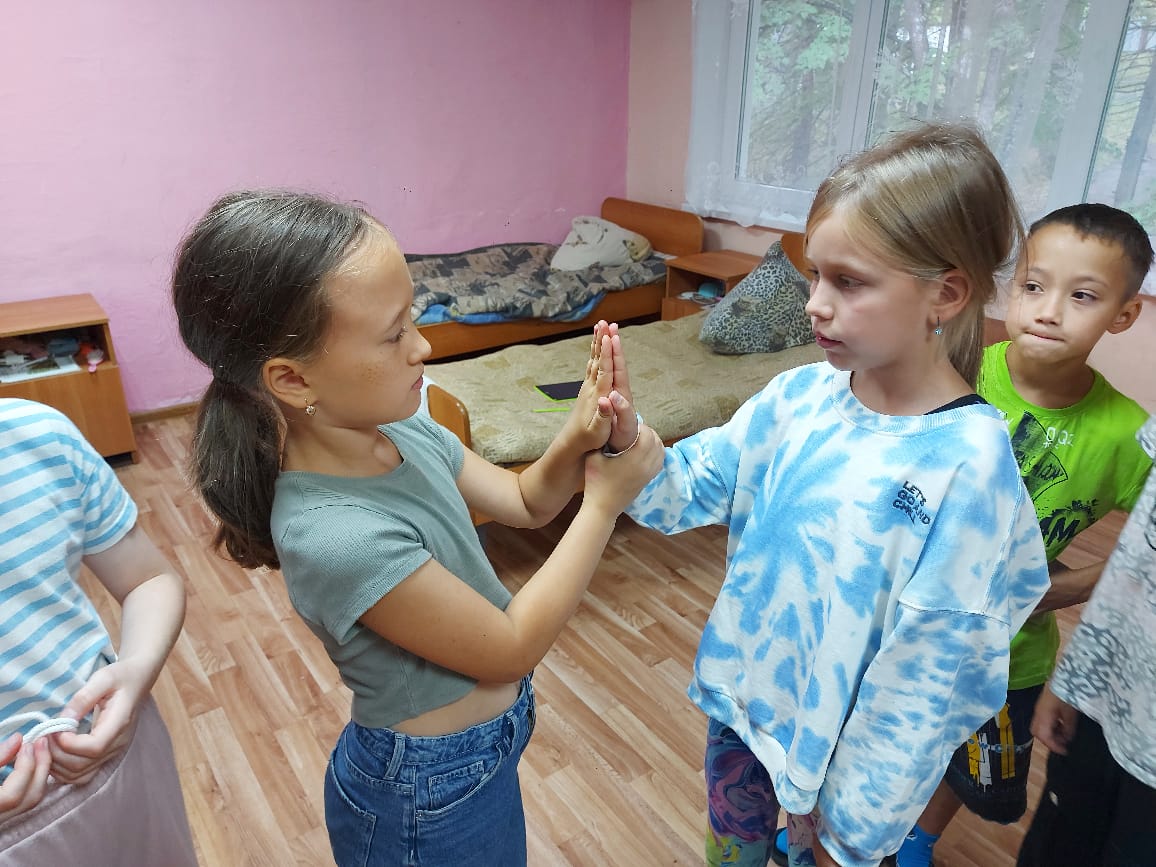Игры на сплочение и командообразоаание сближают ребят пока на улице дождь! Команда "Алга" и капитан Ильдар.