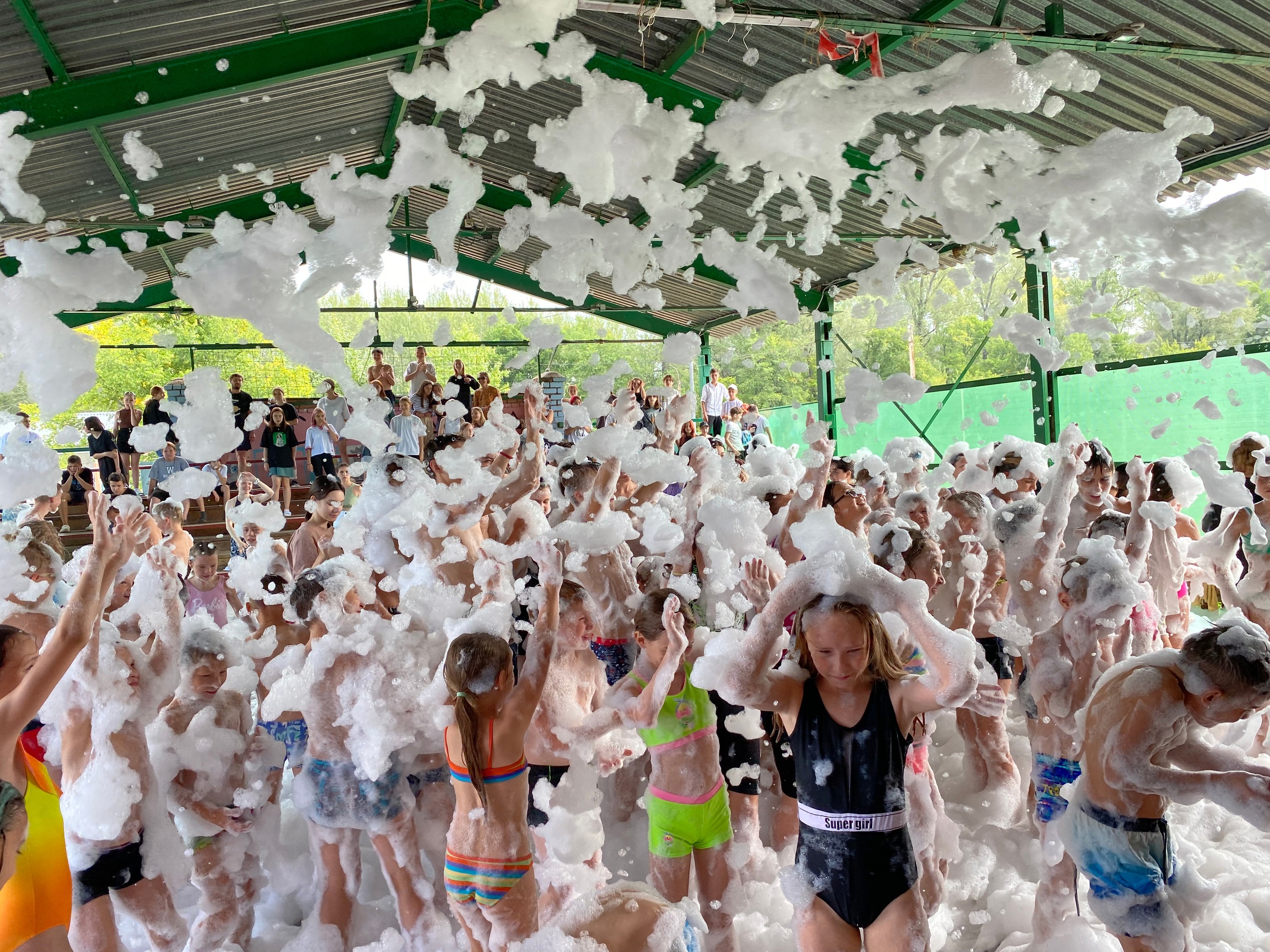 Все были одеты в купальники и готовы к веселью. Вскоре на площадке появился огромный генератор пены, и началось самое интересное.