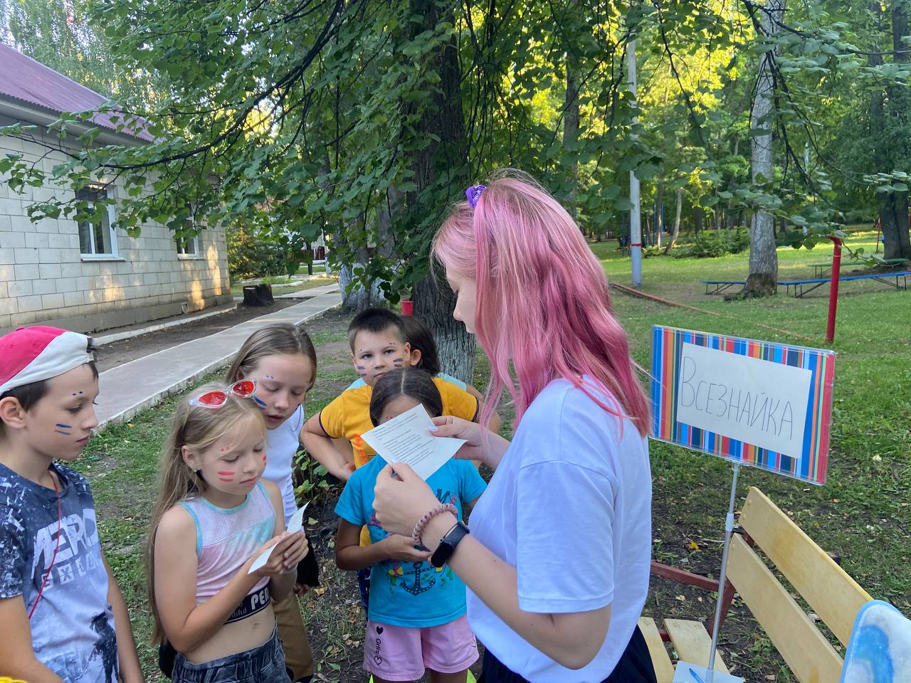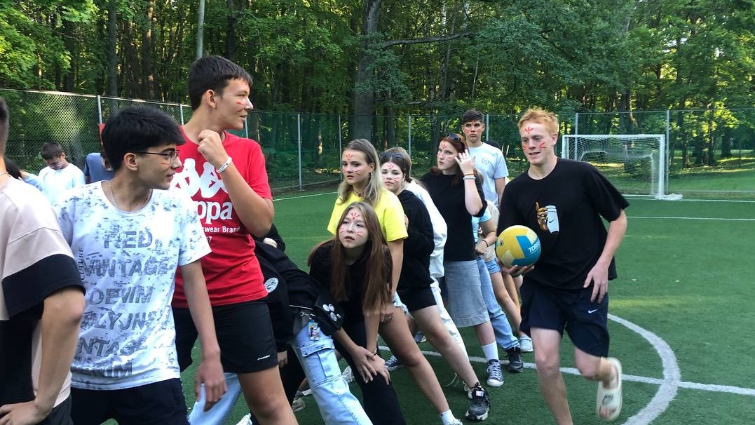 Спортивная станция была посвящена спорту и физической активности. Дети играли в футбол, волейбол и другие игры, а также занимались гимнастикой и акробатикой.