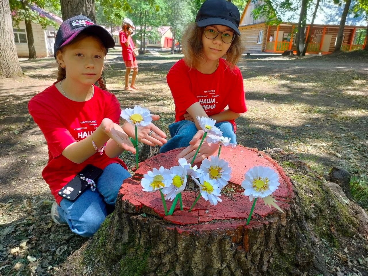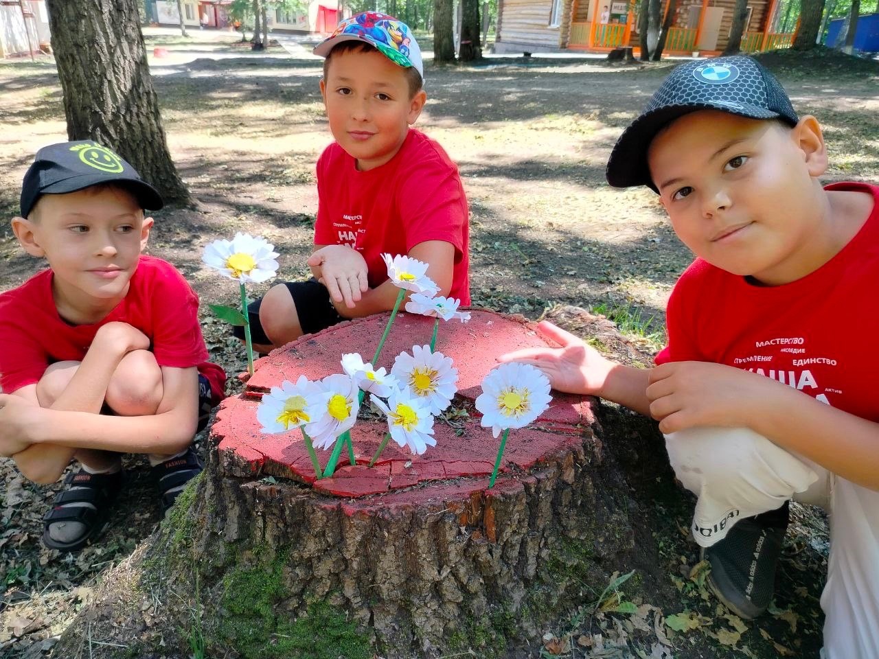 В честь праздника "Семьи, любви и верности" с ребятами изготовили ромашку - символ любви и верности. Благодаря стараниям детей на территории лагеря даже зацвел старый пень