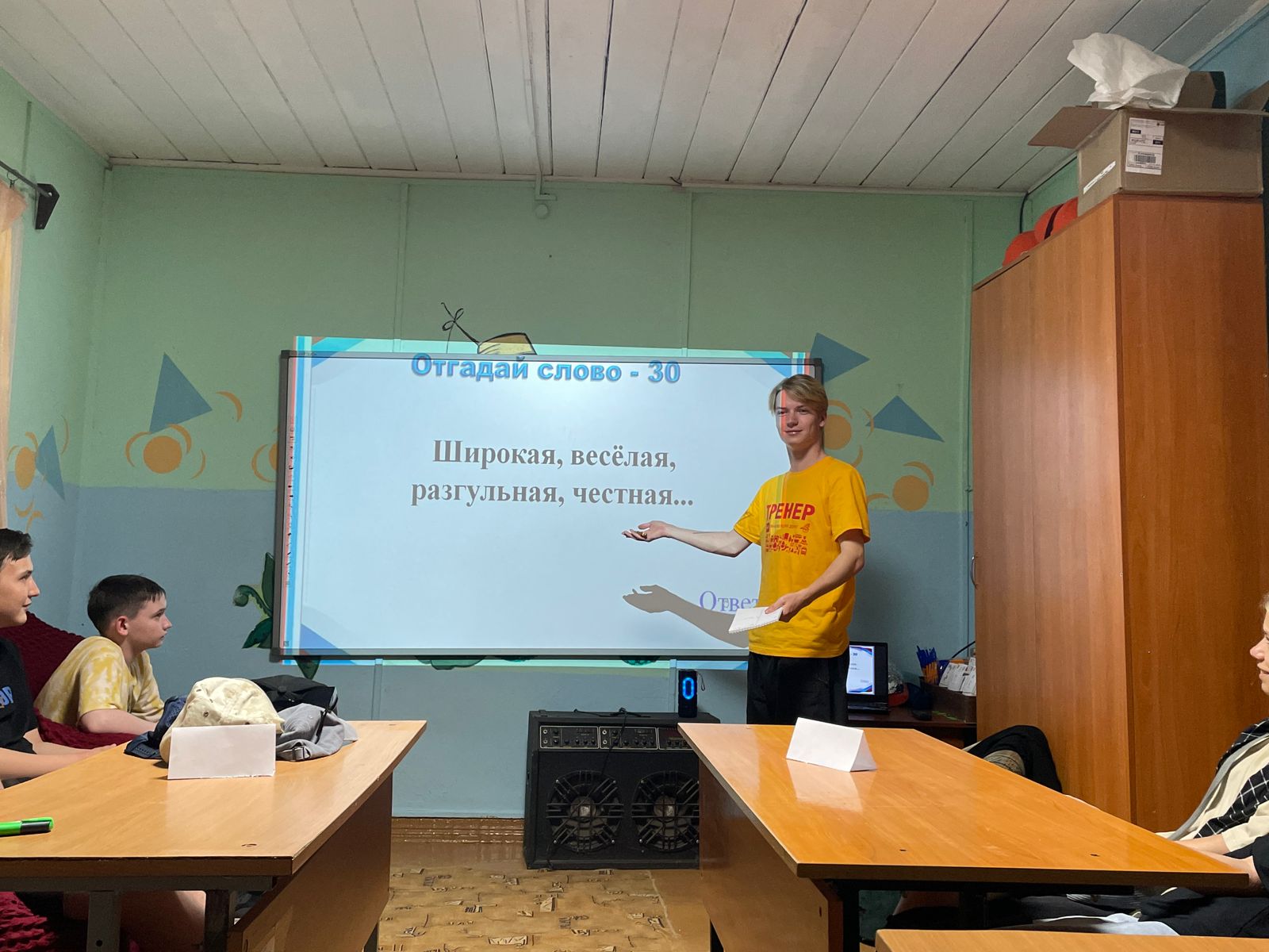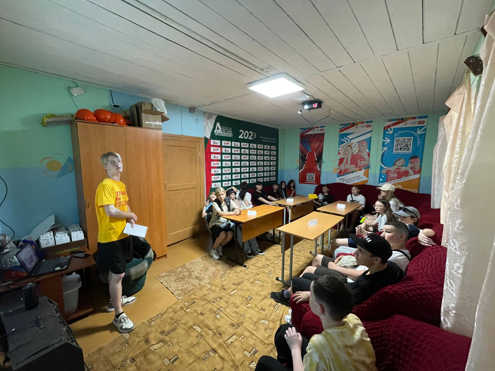 В День единых действий для ребят старшей дружины тренер Семен корпоративной программы Страна железных дорог, провел интерактивную игру « Россия - родина моя!» . В процессе игры ребята узнали много интересных фактов о флаге, гербе и гимне Российской Федерации. Команды отвечали на вопросы тренера, соревновались в быстроте и ловкости. Горячее спасибо болельщикам, которые так дружно поддерживали наши команды. В итоге, победила дружба!