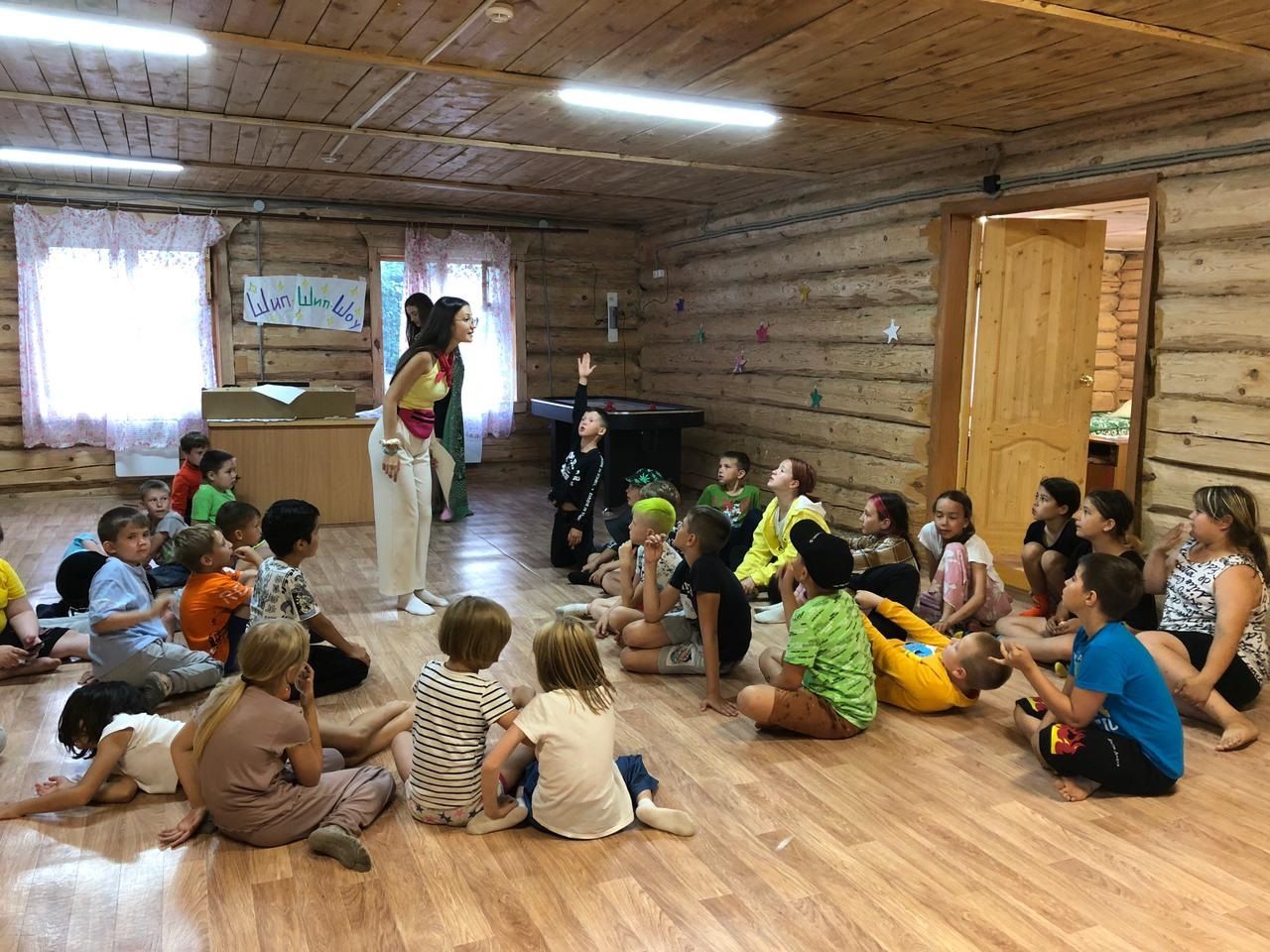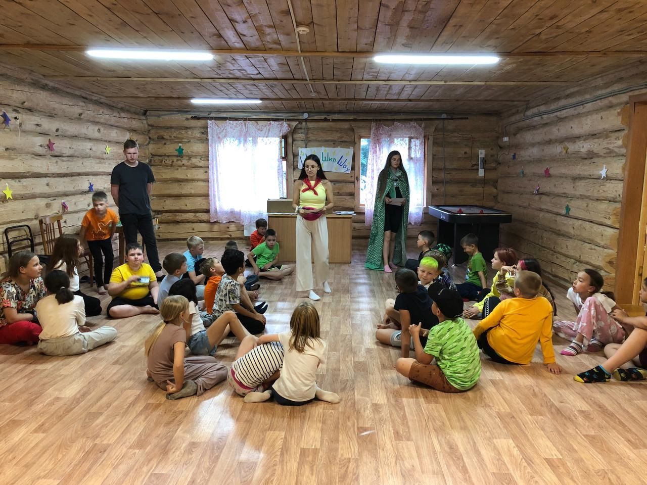 Вечером в лагере прошло мероприятие "В гостях у отряда", где ребята ходили друг к другу в гости и соревновались в таких играх, как: старшие отряды соревновались кто веселее и находчивее, средние отряды участвовали в первенстве конкурсов, направленных на логику и быстроту реакции, а к младшим отрядам приходили клоуны и устраивали с ними детские конкурсы, загадывали загадки.