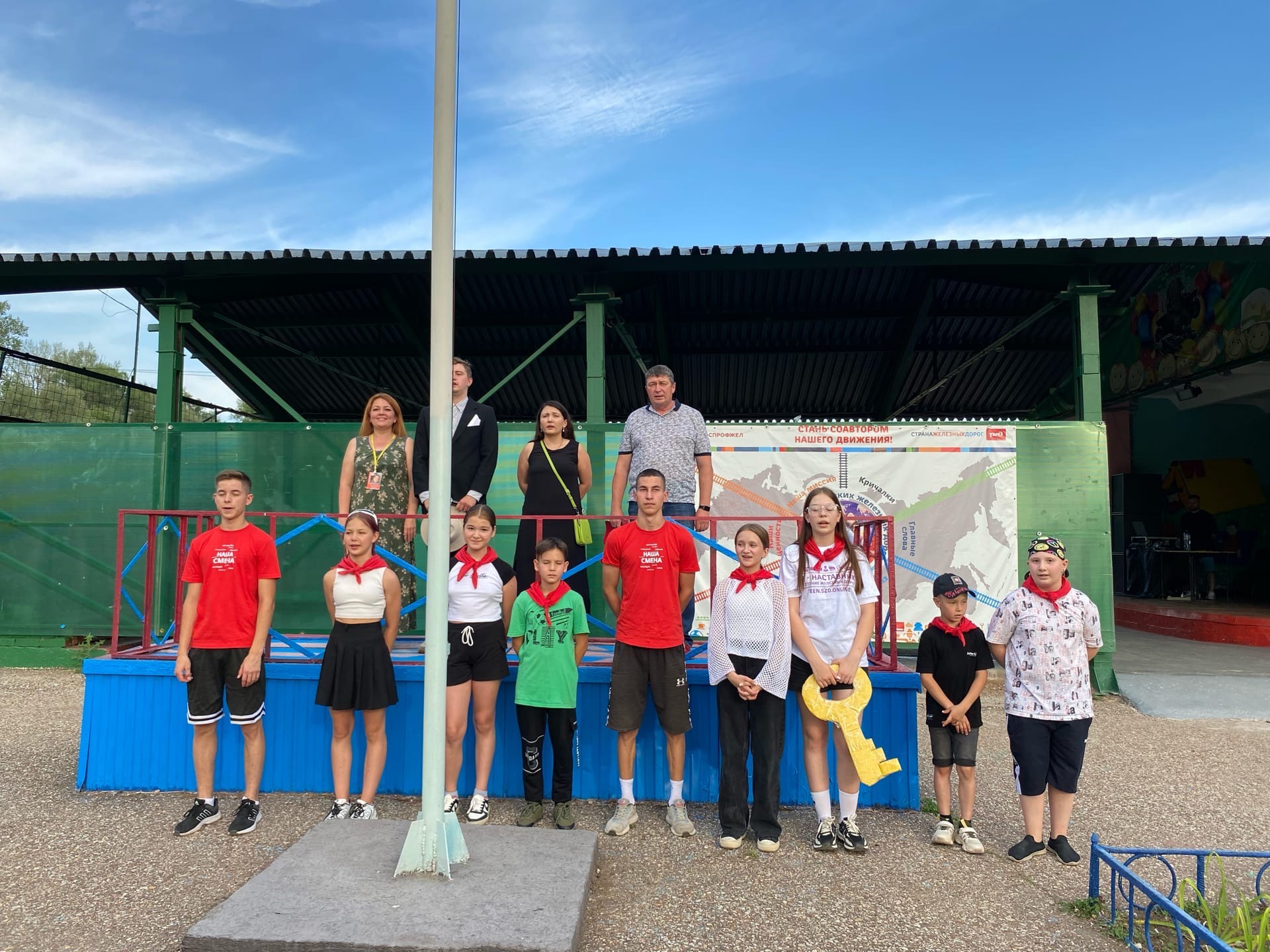 Сегодня прошла линейка с поднятием флага Российской Федерации!