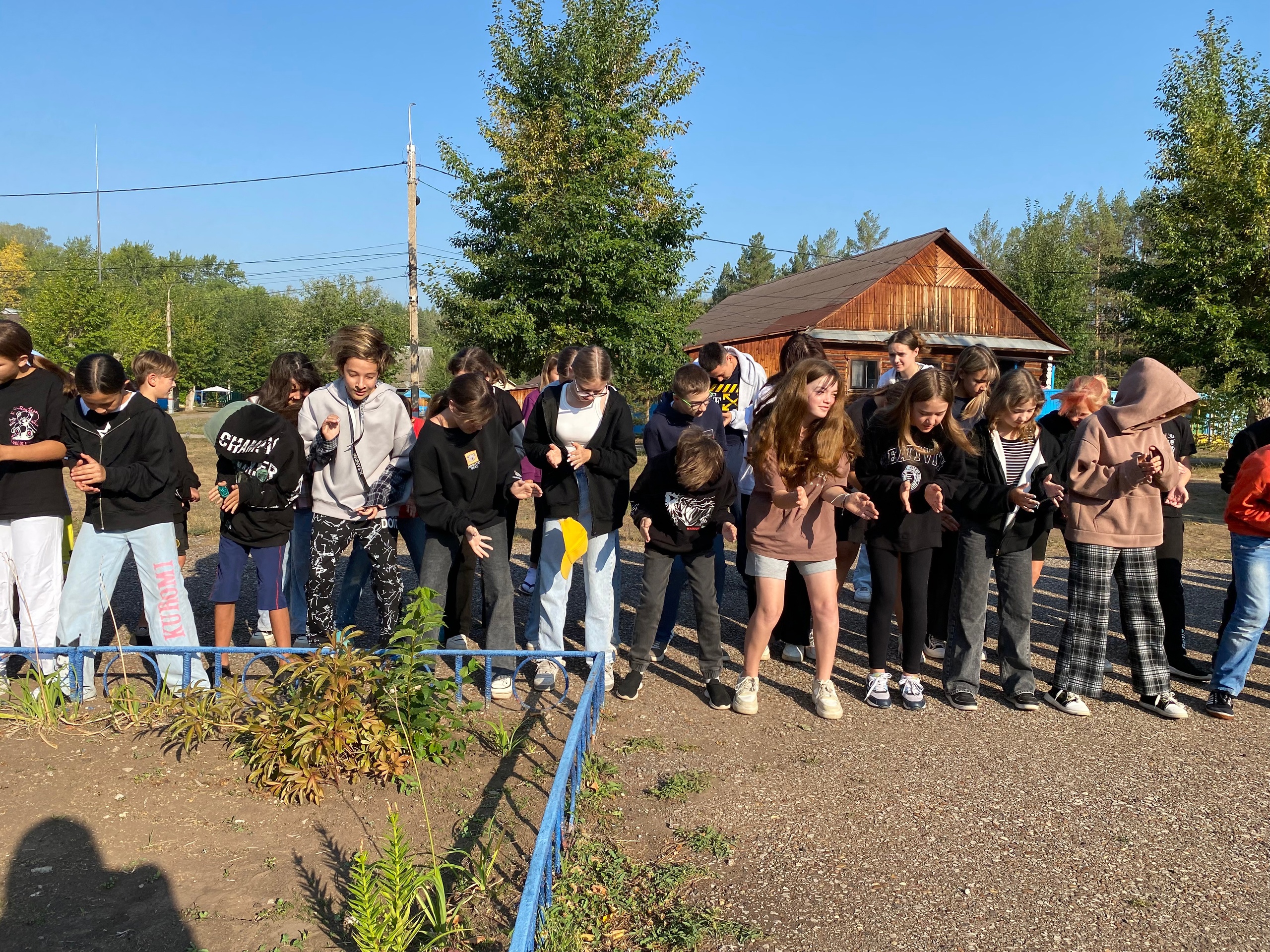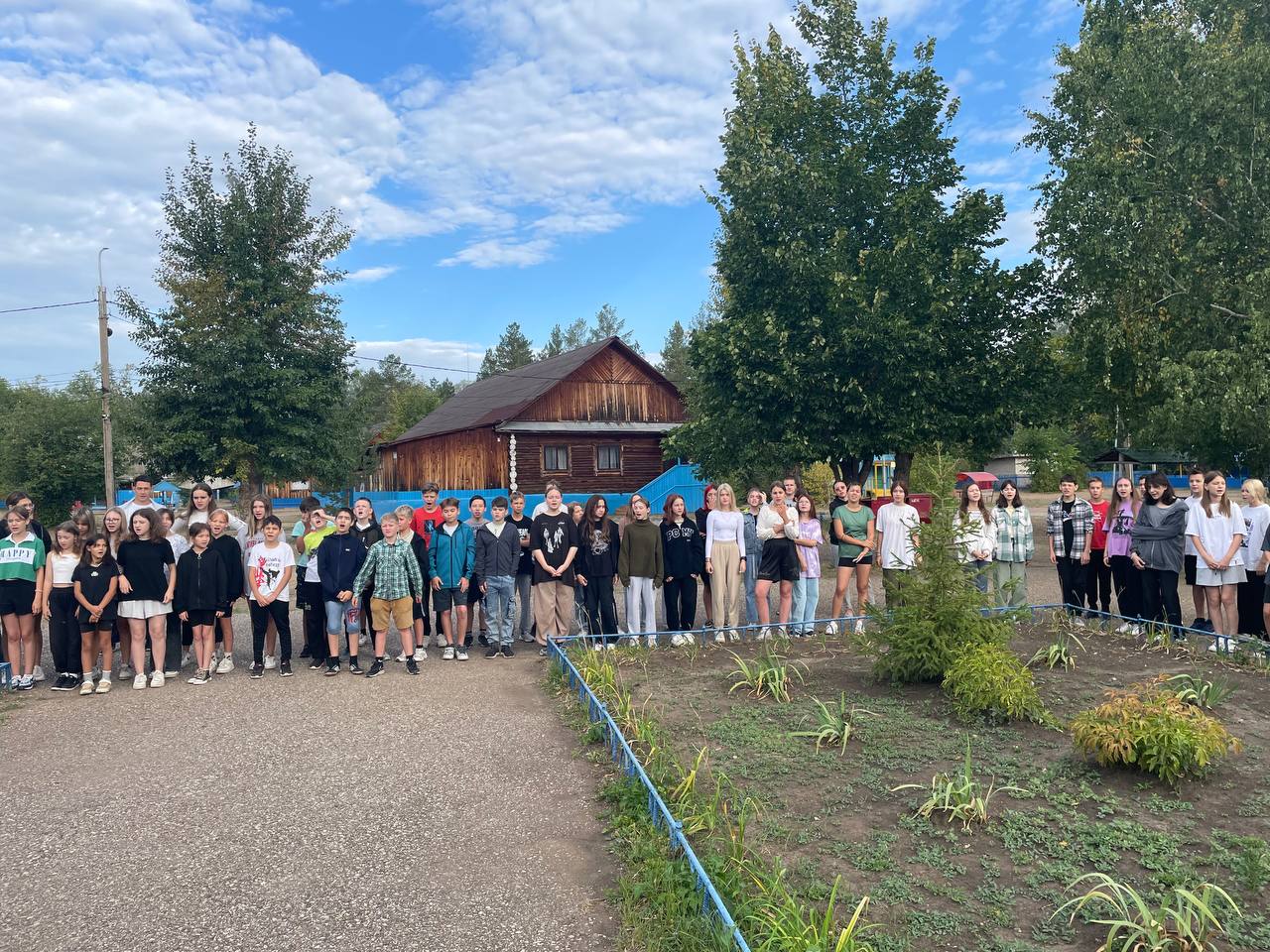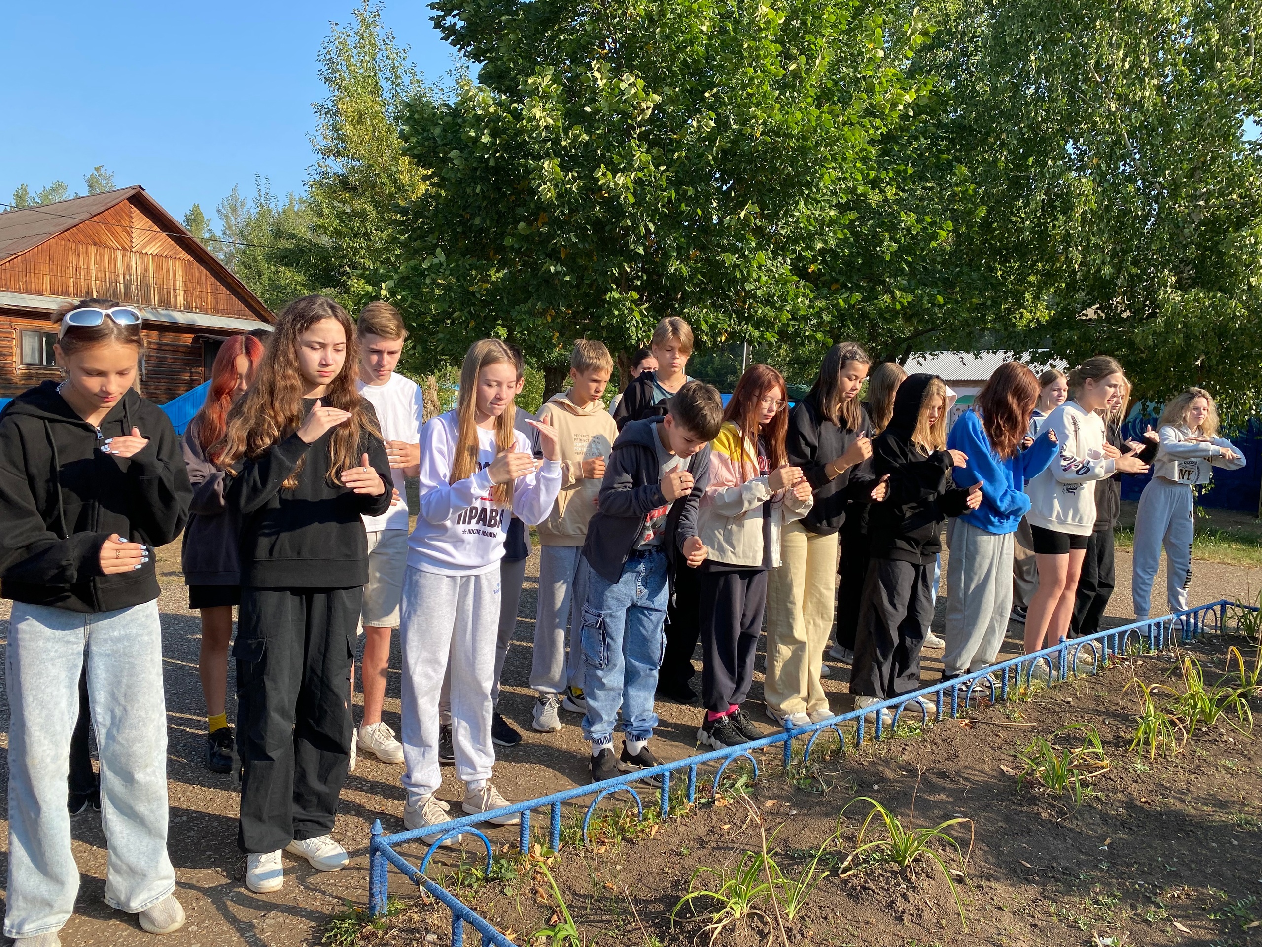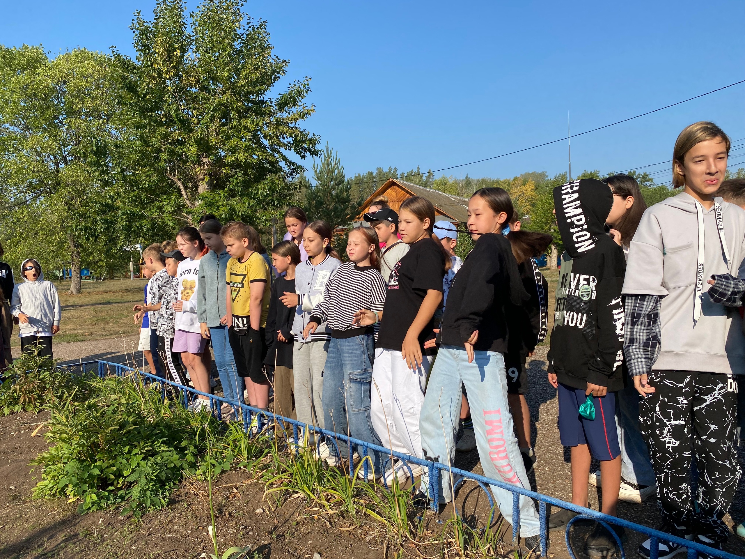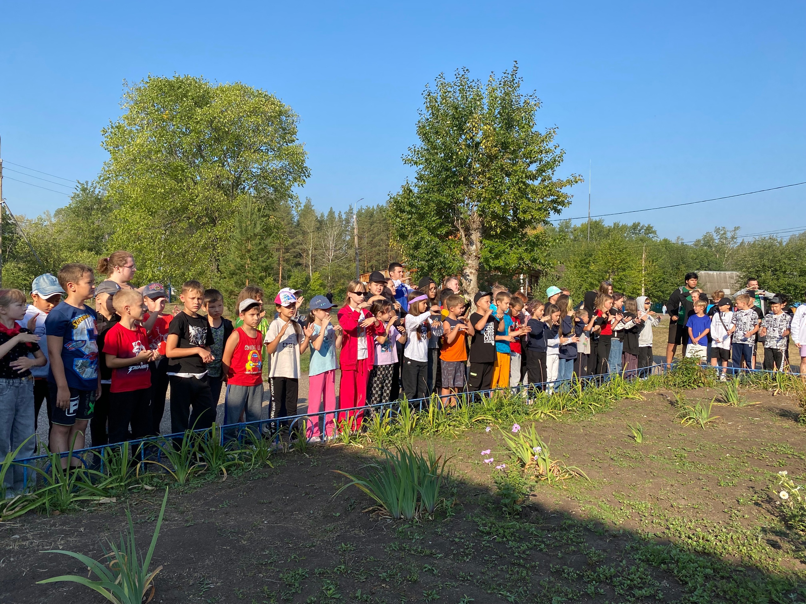 Во время утренней линейки все участники лагеря собираются в одном месте, где проводятся следующие мероприятия: