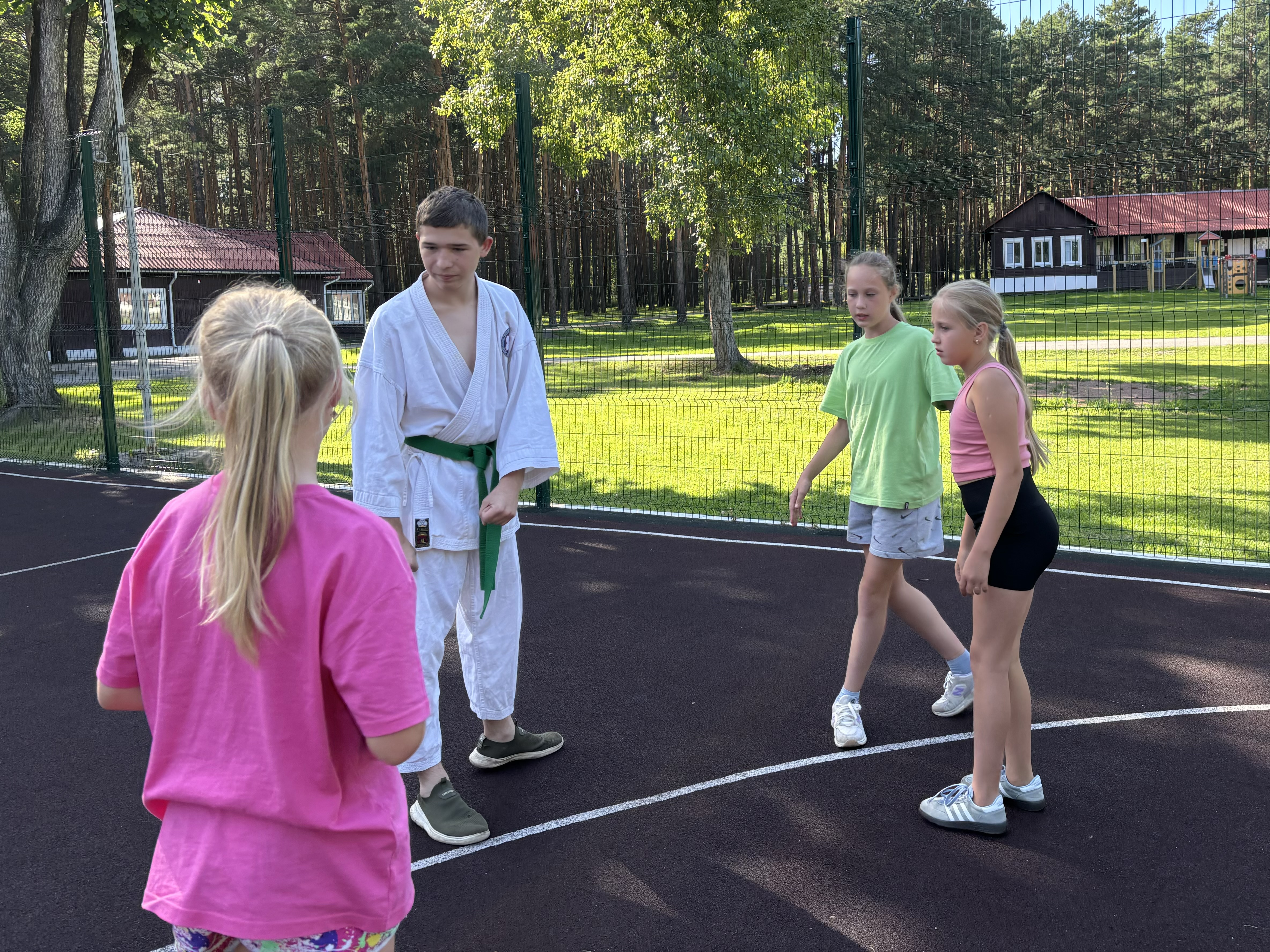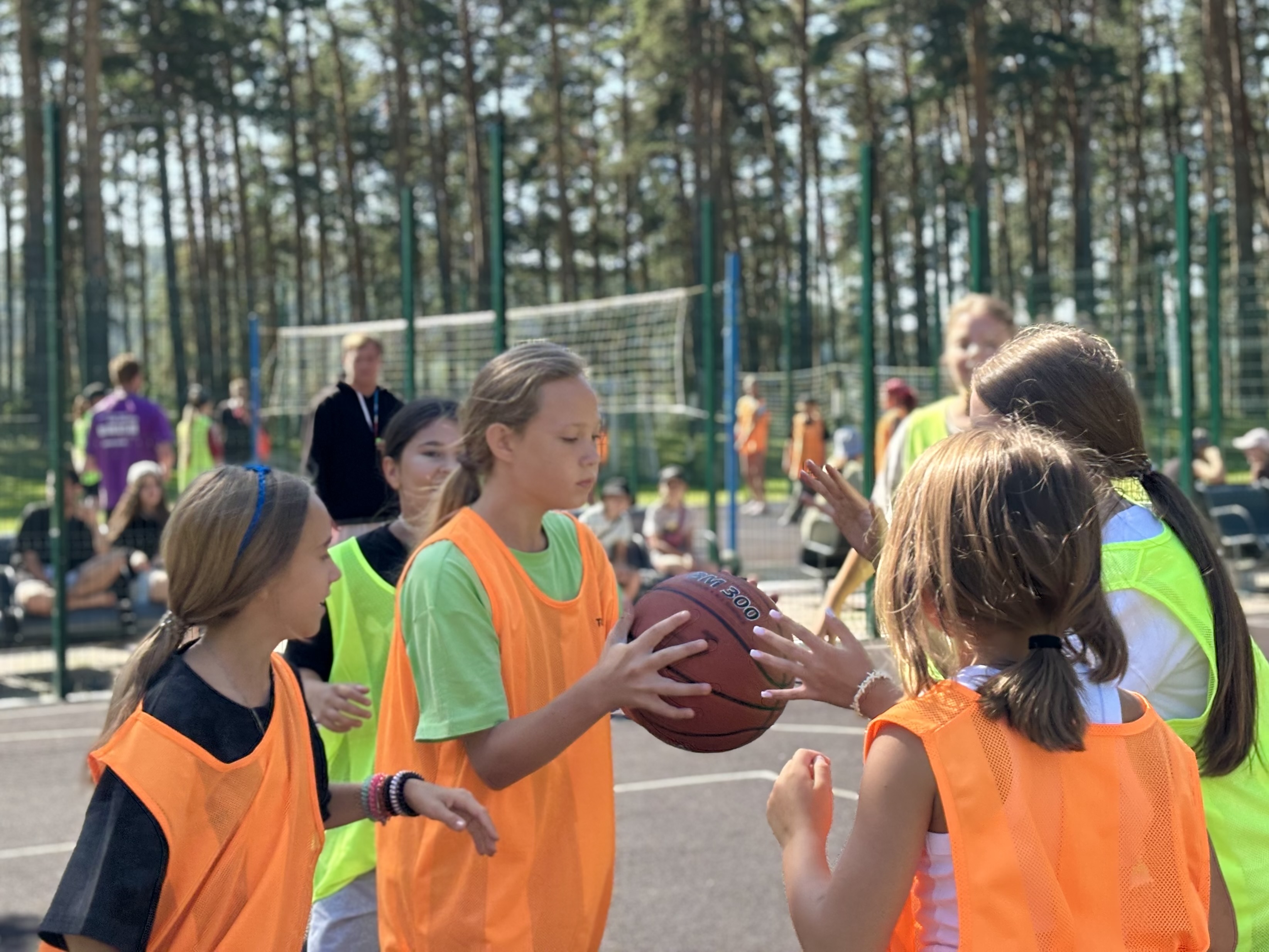 В нашем лагере «Дружба» прошел замечательный спортивный день, полный энергии и веселья! Утро началось с захватывающих матчей: мальчики из 1-2 отряда сразились в футбол, а девочки из того же отряда показали свои навыки в волейболе. На площадке 3-4 отряда прошли дружеские игры по баскетболу, где как девочки, так и мальчики продемонстрировали отличную командную игру!