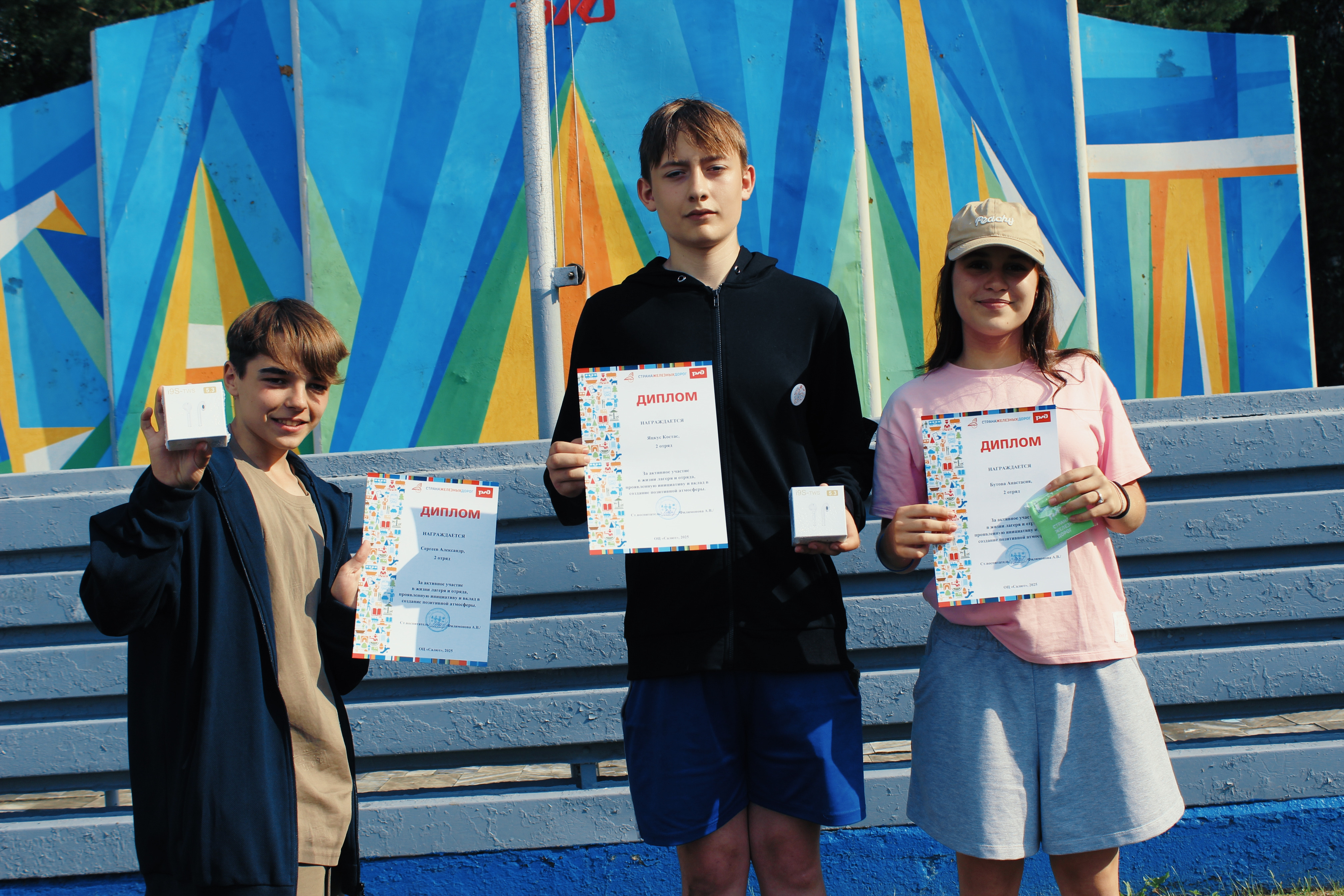 🏕 После полдника весь лагерь, собравшись на шлаг-штоке, стал свидетелем торжественной церемонии закрытия смены, наполненной радостью и одновременно легкой грустью. Самые активные и трудолюбивые ребята из каждого отряда, внёсшие значительный вклад в жизнь Салюта на протяжении всей смены, были награждены заслуженными памятными подарками, став примером для всех.