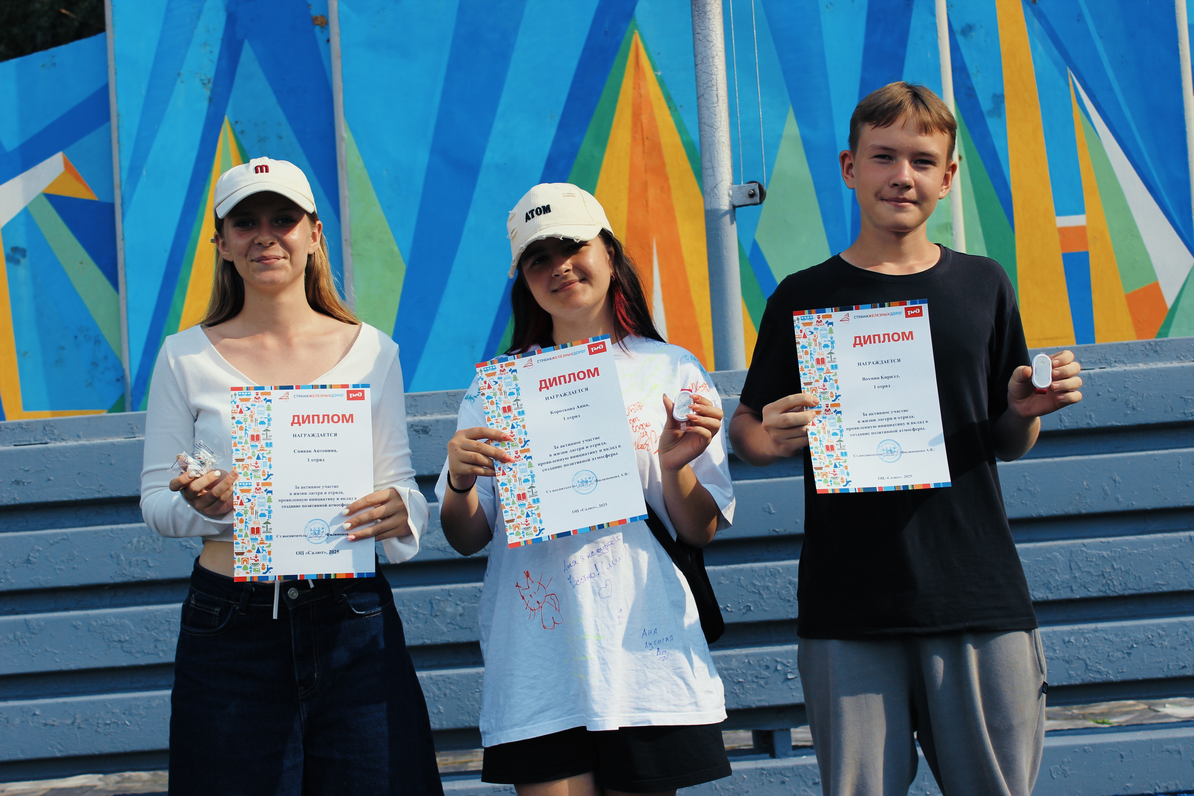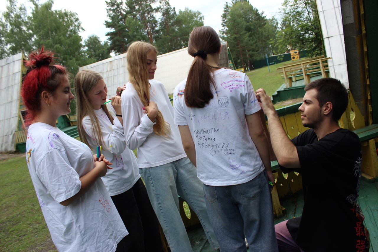 🌟 Оставшееся время было посвящено подготовке к вечернему мероприятию, репетициям лучших номеров для яркого концерта "Мы – дети РЖД", участию в увлекательной игре "Московские прятки", обмену теплыми словами и душевными "Браталками", а также трогательной традиции – росписи футболок друг друга, оставив на память частичку своей души и незабываемые воспоминания о лете. И как символ этой крепкой связи, на концерте ребята получили памятные браслеты, которые теперь навсегда объединят их в одну большую и дружную железнодорожную семью!