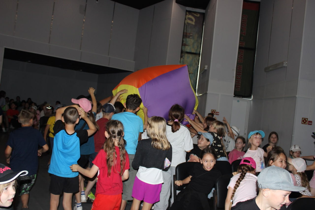 🧑🔬После утренней зарядки, ребята поспешили на завтрак. А затем всех ждало захватывающее «Криошоу» в актовом зале! Ребята с восхищением наблюдали за волшебными превращениями, которые творил жидкий азот, словно попав в научную лабораторию.