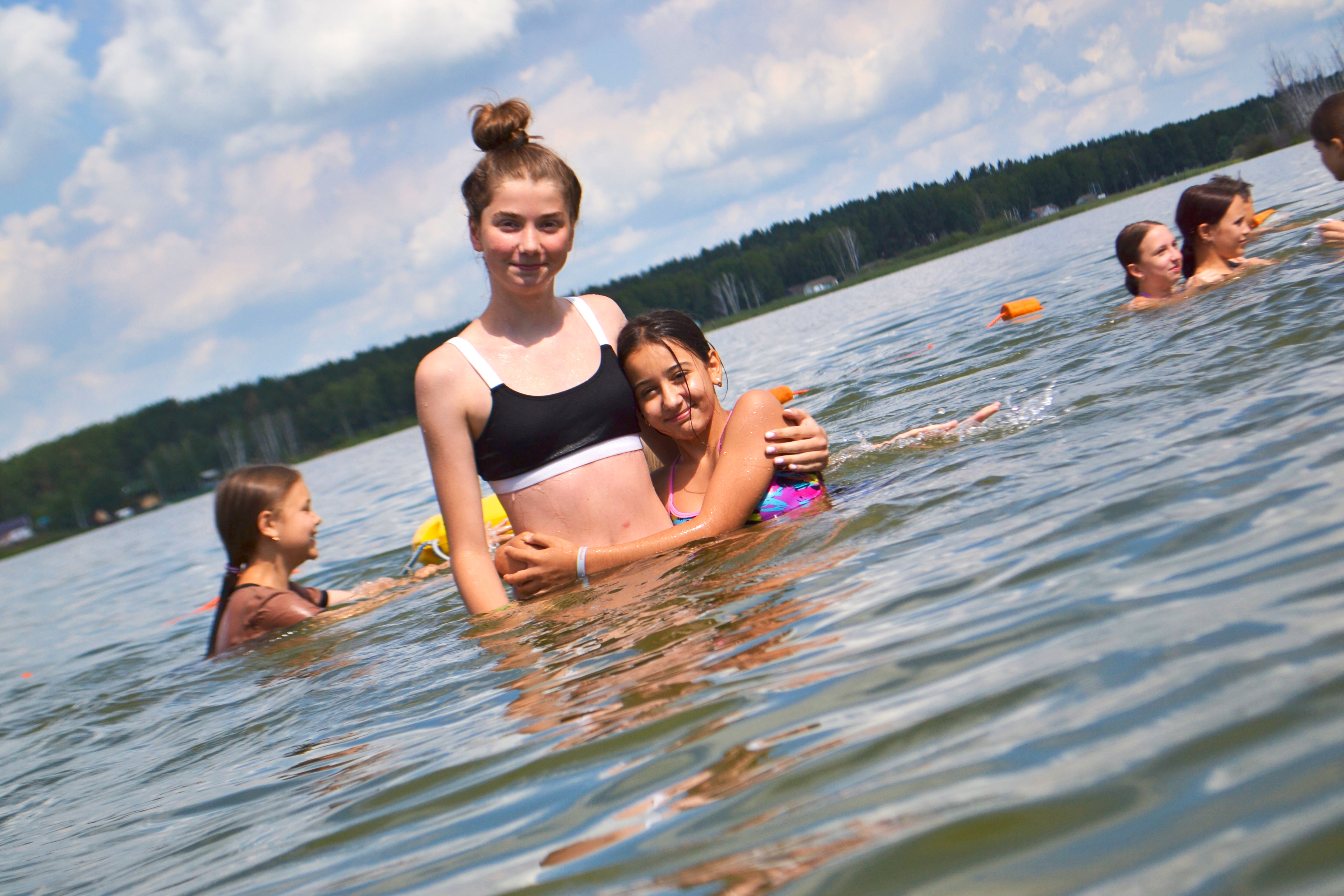 Сегодняшний день мы провели особенно интересно. В первой половине дня часть отрядов отправилась на озеро, а вторая часть осталась в лагере и прошла занятия в творческих мастерских и учебном центре