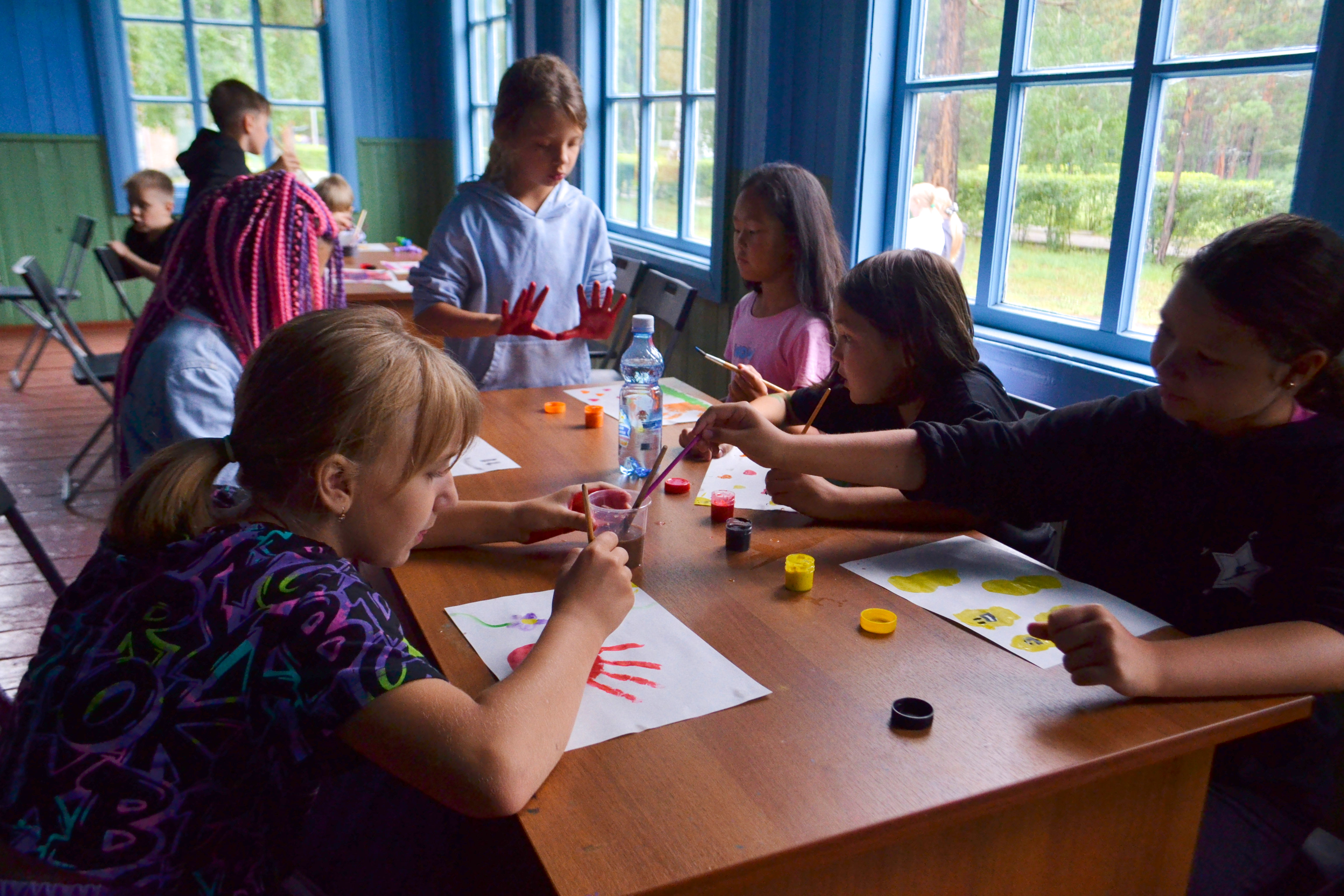 Сегодняшний день начался с учебно-творческой деятельности: свою работу начали творческие мастерские, на которых ребята работали над развитием своих творческих способностей. Также, первое учебное занятие прошло в рамках железнодорожной игротеки и железного здоровья