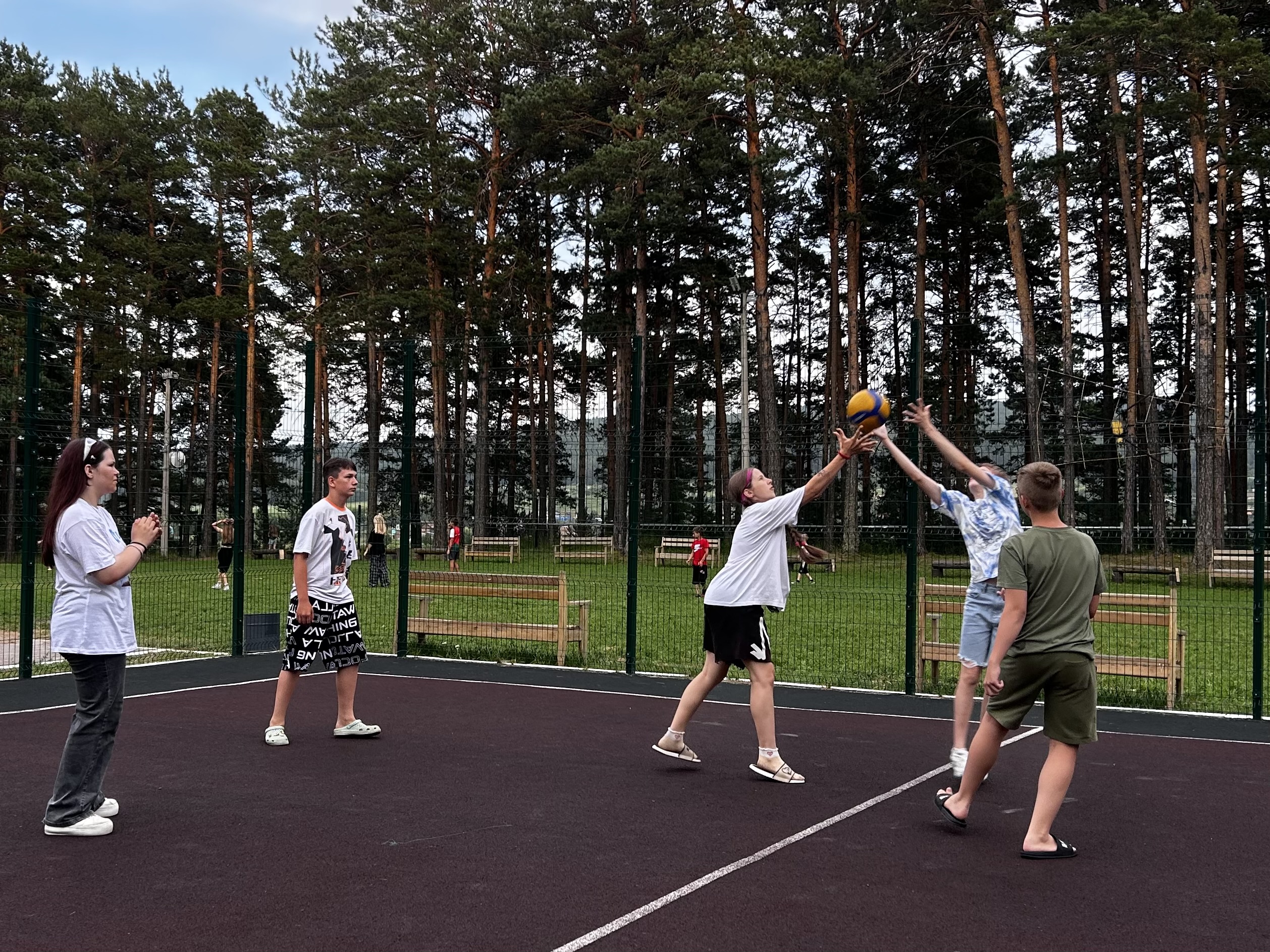 В свободное время после соревнований дети активно занимались спортом, играя в волейбол, баскетбол, футбол и бадминтон. Каждый находил занятие по душе и веселился в компании друзей, развивая свои спортивные навыки и поддерживая активный образ жизни.