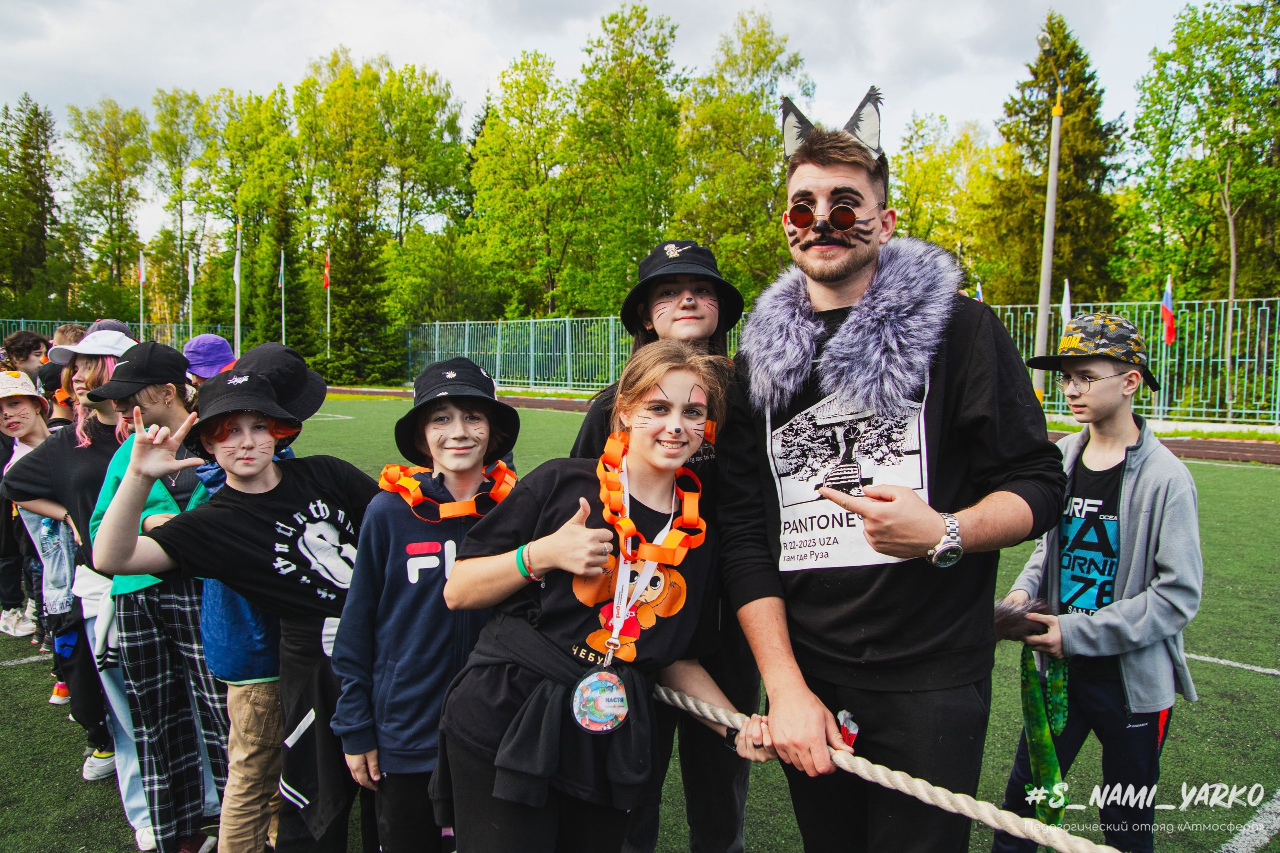 Наши группы отправились на поиски монеток, но наткнулись на героев сказок, всех известных нам с детства: Золотая рыбка, Кот ученый, Богатырь, Балда и многие другие.