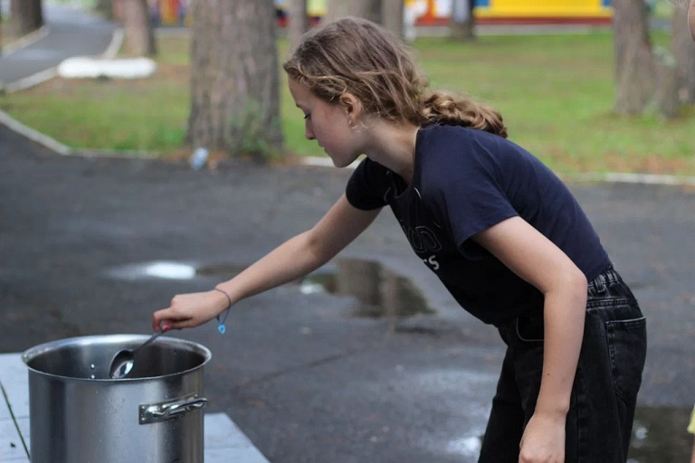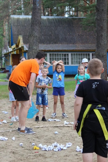 На последующей за линейкой станционной игре "По морям, по волнам" ребята смогли продемонстрировать свою смекалку, ловкость, сообразительность, выносливость и знание фактов в ВМФ России. Все отряды (в этот день - экипажи) прошли проверку и получили звание юнг Синезёрской флотилии.