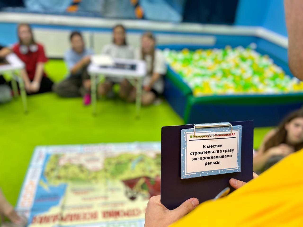 В формате небольших игр мы собирали команды ребят в течение смены и они узнавали много новых фактов о Байкало-Амурской магистрали. Вот, например, вы видите фото с нашей встречи со второй командой 6 отряда! У девочек был такой азарт в глазах, что они еще долго спорили о правильных ответах, могло быть такое или нет, и так искренне удивлялись правильным ответам.