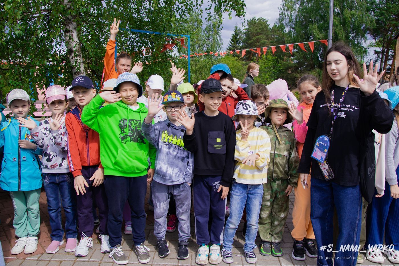 Мы официально познакомились с отрядами, узнали их названия и девизы, запечатлели улыбки на лицах детей.