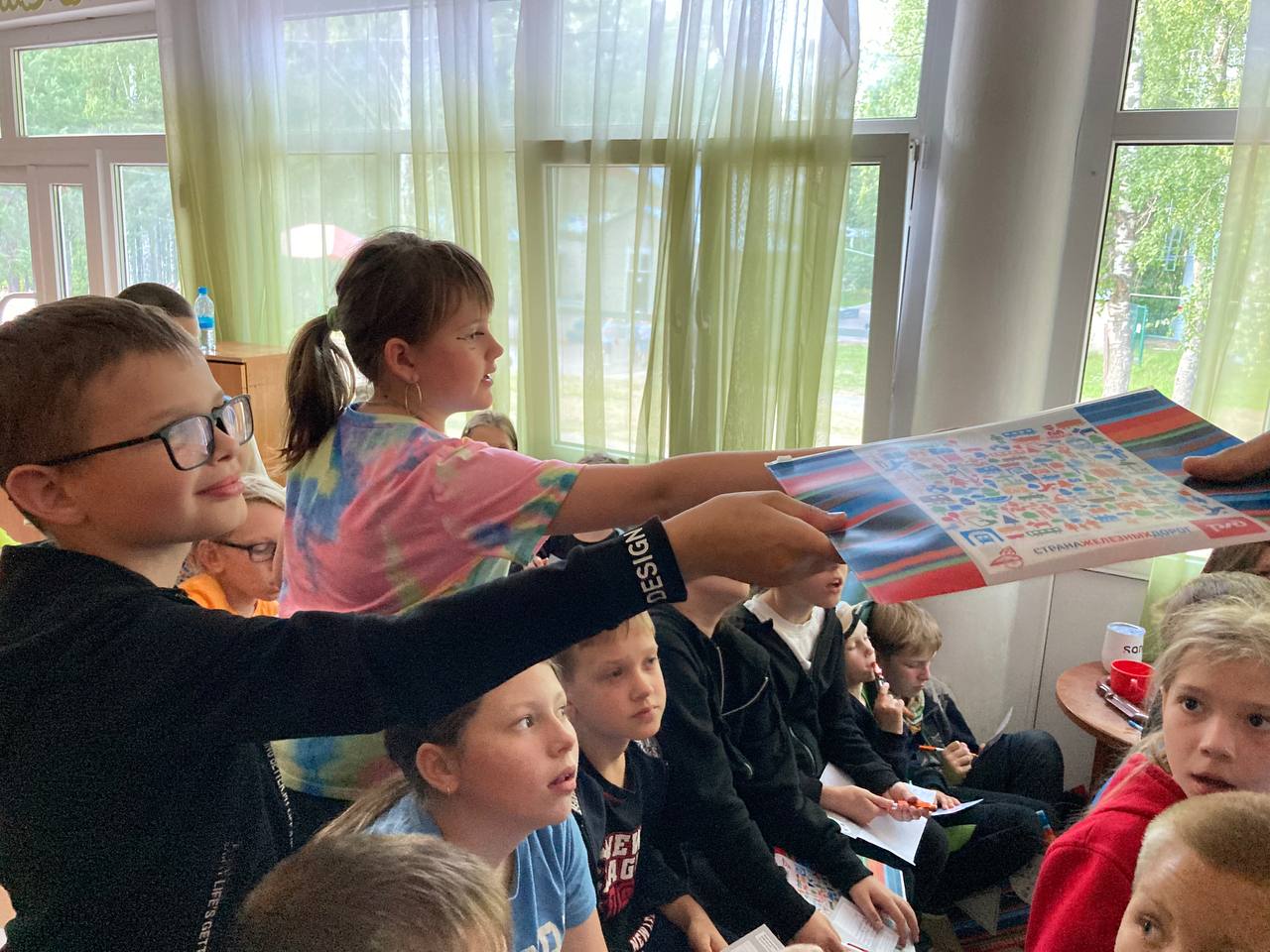 Младшие Маяковцы погружались в Квадромир и делали это играючи, с помощью настольных игр. Одна из игр была «Корзина», в которой детям надо было делить полезные продукты от плохих. В то же время некоторые ребята играли в «Полезный обед», который обучил их правильно сочетать продукты и делать вкусные блюда. Так же хотелось бы отметить, что дети играли в настольные игры про чистоту, профессии, безопасность в интернете и безопасность в жизни