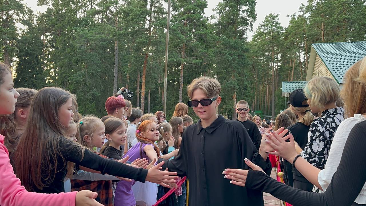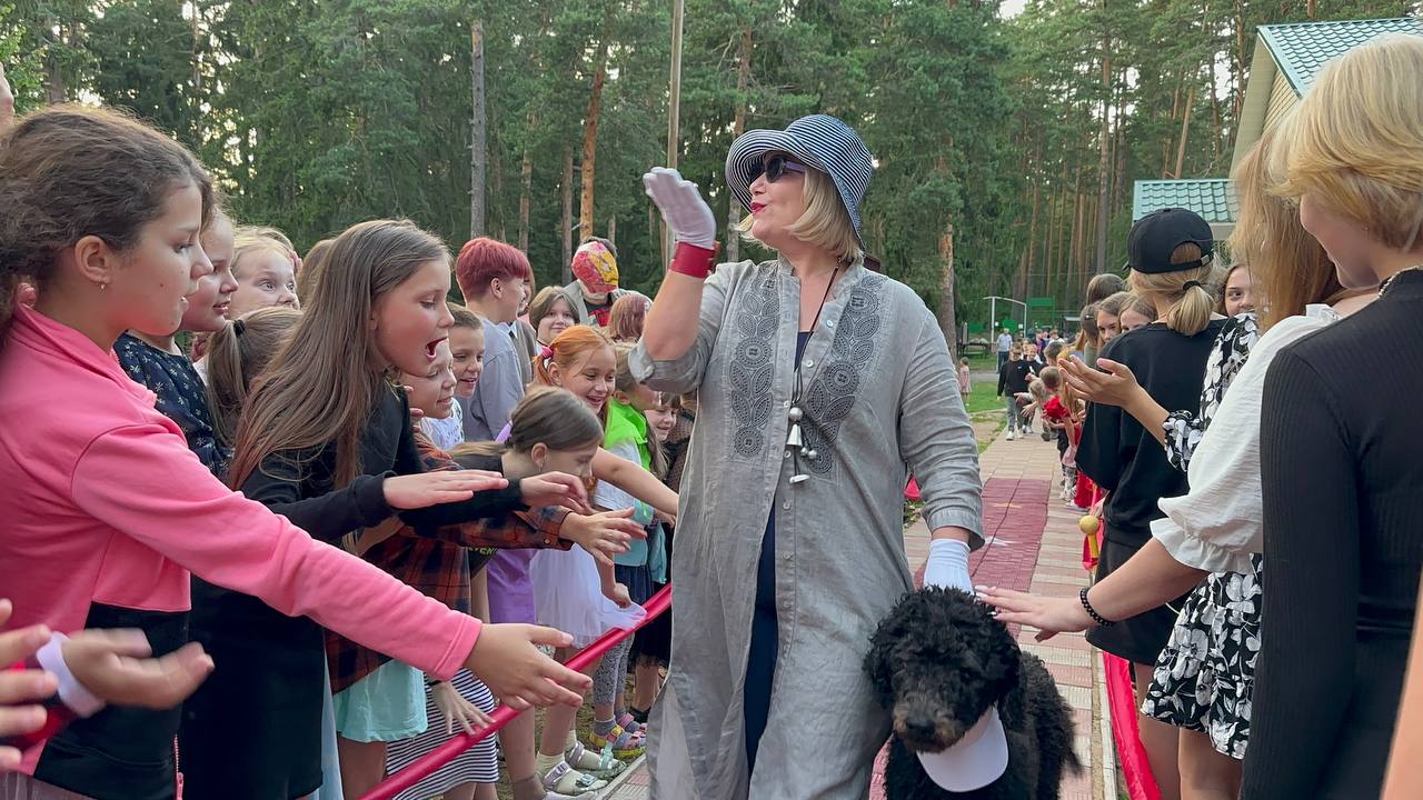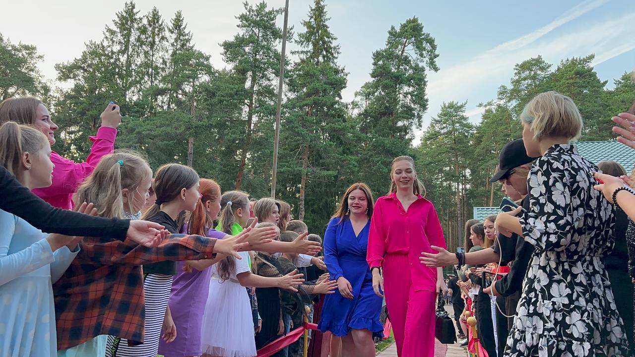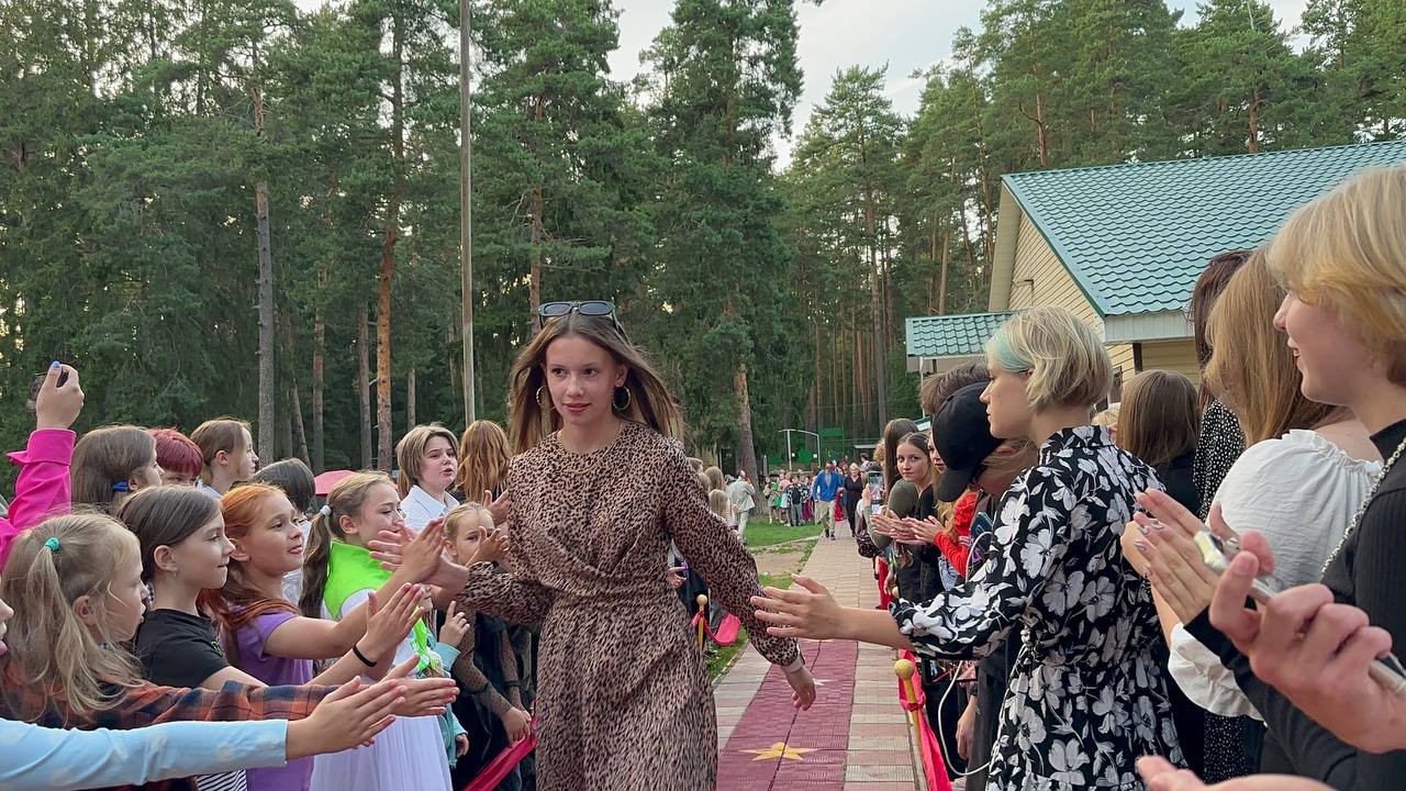 Знаменистости прибывали в лагерь накануне и торжественно шествовали по красной дорожке к клубу на просмотр кинофильмов, созданных каждым отрядом ДОЛ "Тверца".