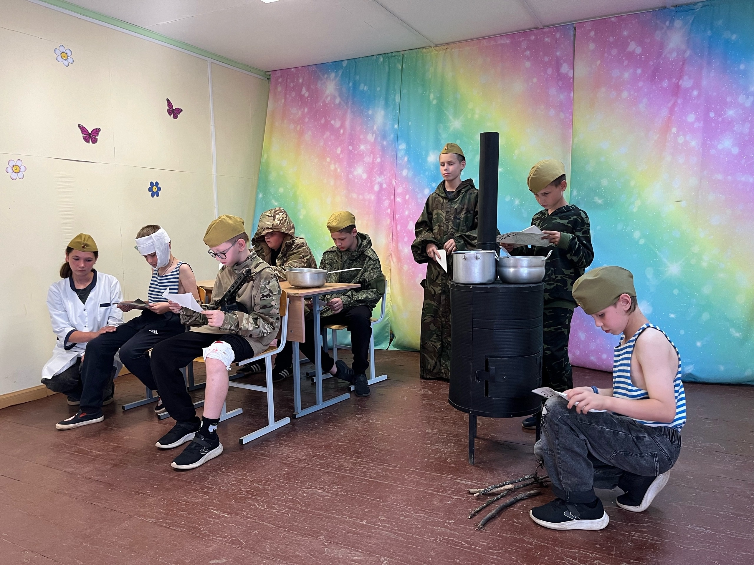 Сегодня в лагере прошел фестиваль инсценированной военно-патриотической песни «Нам этот мир завещано беречь». Каждый отряд проинсценировал песню. Прозвучали «Встанем», «В землянке», «Три танкиста», «Синий платочек», «Дорога на Берлин», «А закаты алые …», «Дети войны», «Белые панамки», «О той весне». Ребята прочувствовали, как хрупок этот мир, как тяжело пришлось тем, кто защищал Родину.