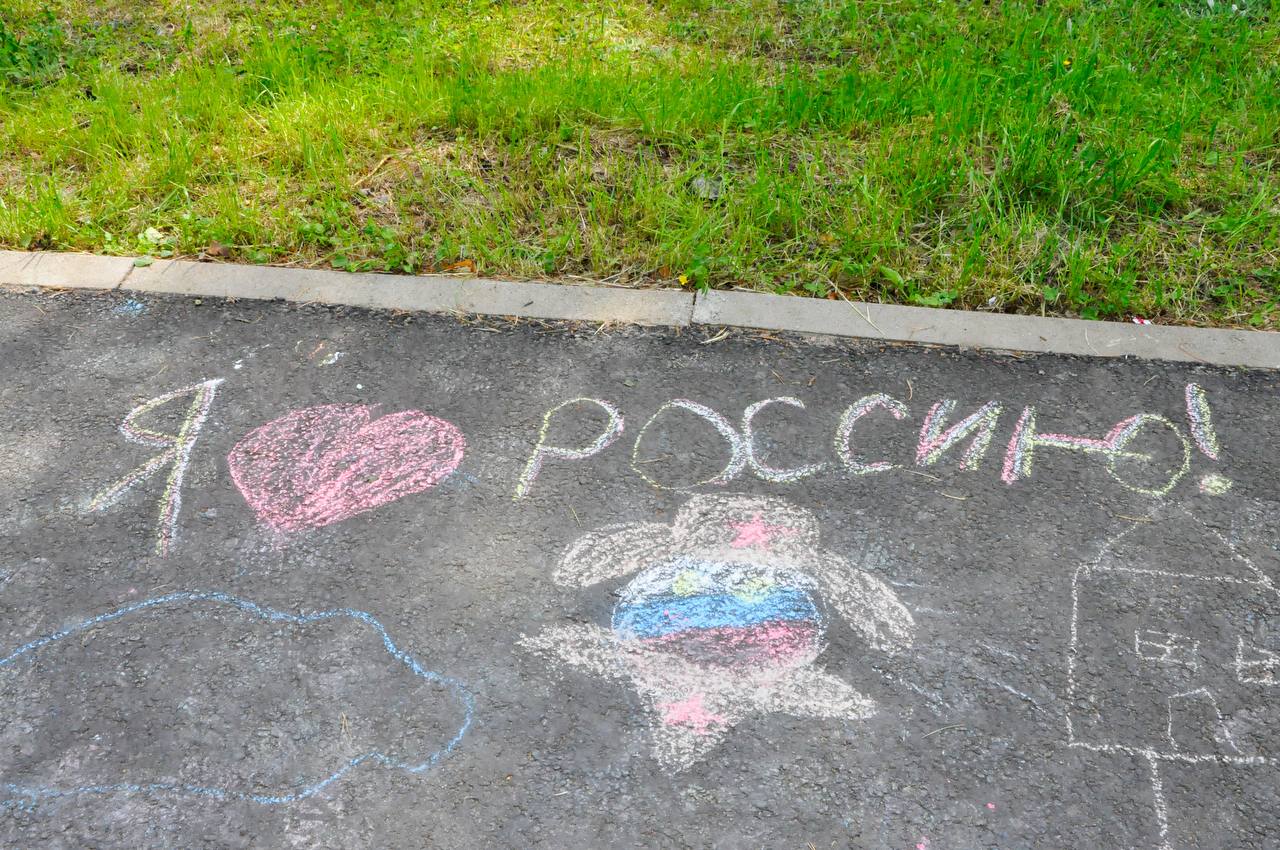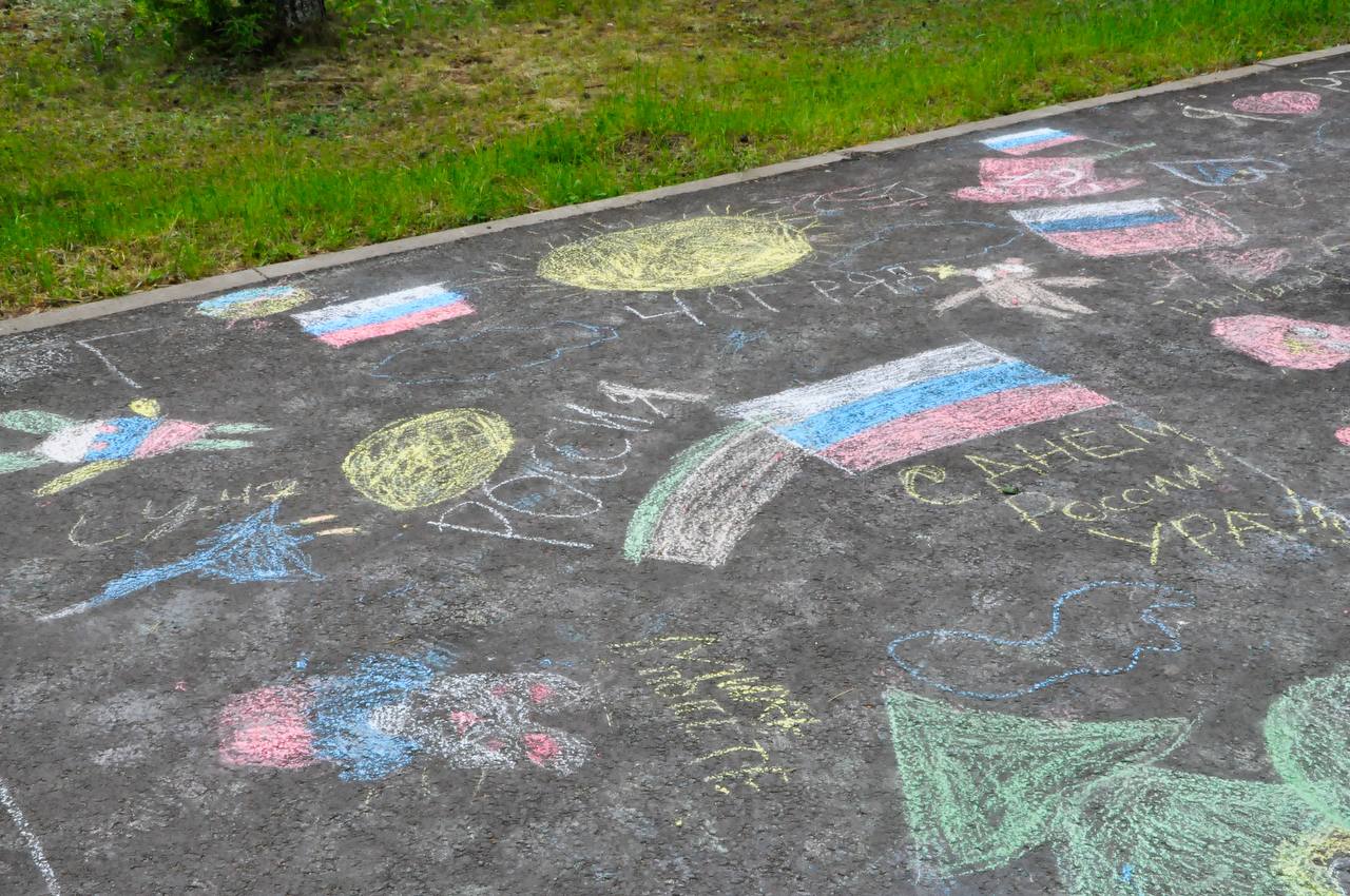 Старшие отряды поразили всех своими синхронными и энергичными флешмобами, отражающими мощь и красоту России. А самые маленькие участники, вооружившись мелками, превратили асфальт в яркую галерею патриотических рисунков.